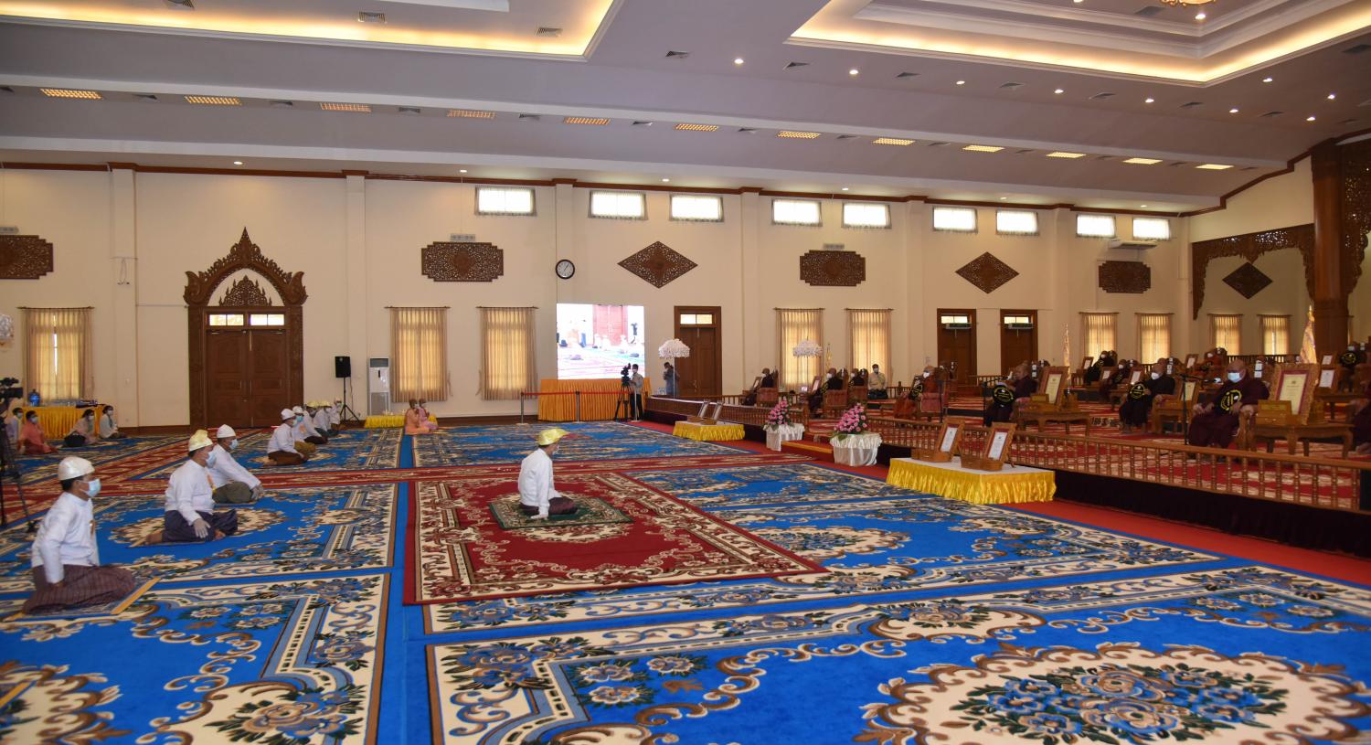 ၂၀၂၁ ခုနှစ် သာသနာတော်ဆိုင်ရာ ဘွဲ့တံဆိပ်တော်များ ရရှိကြသည့် နေပြည်တော်ကောင်စီ နယ်မြေမှ ဆရာတော်ကြီးများ၊ သီလရှင်ဆရာကြီးများနှင့် လူပုဂ္ဂိုလ်တို့အား သာသနာတော် ဆိုင်ရာ ဘွဲ့တံဆိပ်တော်နှင့် အဆောင်အယောင်များ ဆက်ကပ်ပူဇော်ပေးအပ်ပွဲ မဟာမင်္ဂလာ အခမ်းအနားကို ယနေ့မွန်းလွဲပိုင်းတွင် နေပြည်တော် ဥပ္ပါတသန္တိစေတီတော် ပရိဝုဏ်အတွင်းရှိ သာသနာ့မဟာဗိမာန်တော်ကြီး၌ ကျင်းပသည်။