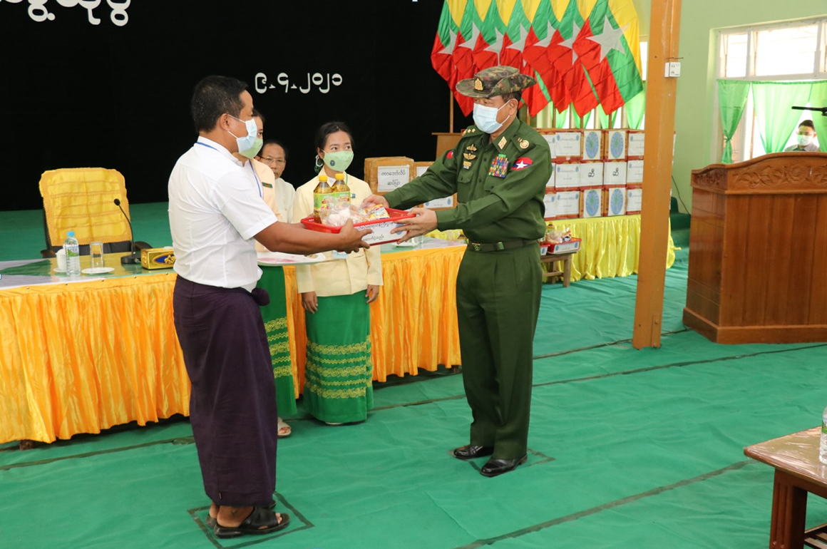 ခရီးစဉ် အတွင်းတွင် နယ်စပ်ရေးရာဝန်ကြီးဌာနက ယာယီခိုလှုံရာစခန်းနေသူများ အတွက် အိမ်ထောင်စု တစ်စုလျင် အခြေခံစားကုန်များနှင့် လူသုံးကုန်ပစ္စည်းများ ဖြစ်သည့် ဆီ ၂ လီတာ၊ ပဲ ၂ ပိဿာ၊ ကြက်သွန်နီ ၁ ပိဿာ၊ ကြက်သွန်ဖြူ ၅၀ ကျပ်သား၊ ကာပေါ်လိတ်နှင့် ရွှေဝါဆပ်ပြာ၊ ဆပ်ပြာမှုန့်ထုတ် တို့ကို ထောက်ပံ့ပေးခဲ့ရာ မြောက်ဦးမြို့နယ်၊ မီးဘေးသင့် တိမ်ညိုတိုက်ပွဲရှောင်စခန်းနေသူ အိမ်ထောင်စု ၈၇၅ စုအတွက် ထောက်ပံ့မှုတန်ဖိုး ငွေကျပ် ၁၁,၇၁၆,၂၅၀၊ အမ်းမြို့နယ်ရှိ တိုက်ပွဲရှောင်စခန်း ၃ ခုမှ အိမ်ထောင်စု ၅၁၇ စု အတွက် ထောက်ပံ့မှုတန်ဖိုး ငွေကျပ် ၇,၃၃၆,၂၃၀၊ ကျောက်ဖြူမြို့နယ် ကျောက်တစ်လုံး IDP စခန်းမှ အိမ်ထောင်စု ၃၆၃ စု အတွက် ထောက်ပံ့မှုတန်ဖိုးငွေကျပ် ၄,၀၆၁,၉၇၀၊ စစ်တွေမြို့ရှိ IDP စခန်း ၃၀ မှ အိမ်ထောင်စု ၁,၀၈၈ စုအတွက် ထောက်ပံ့မှုတန်ဖိုးငွေကျပ် ၁၄,၅၆၈,၃၂၀၊ စုစုပေါင်း ထောက်ပံ့မှုတန်ဖိုးငွေကျပ် ၃၇,၆၈၂,၇၇၀ ဖြစ်ကြောင်း၊ တိုင်းရင်းသား လူမျိုးများ ရေးရာ ဝန်ကြီးဌာနက မီးဘေးသင့် တိမ်ညိုတိုက်ပွဲရှောင်စခန်းနေသူ များအတွက် ငွေကျပ် ၁,၀၀၀,၀၀၀၊ အမ်းမြို့နယ်ရှိ တိုက်ပွဲရှောင်စခန်းနေသူများအတွက် ငွေကျပ် ၅၀၀,၀၀၀၊ ကျောက်ဖြူမြို့နယ်၊ ကျောက်တစ်လုံး IDP စခန်းနေသူများ အတွက် ငွေကျပ် ၅၀၀,၀၀၀၊ စုစုပေါင်း ငွေကျပ် ၂,၀၀၀,၀၀၀ ထောက်ပံ့ပေးခဲ့ကြောင်း သိရသည်။