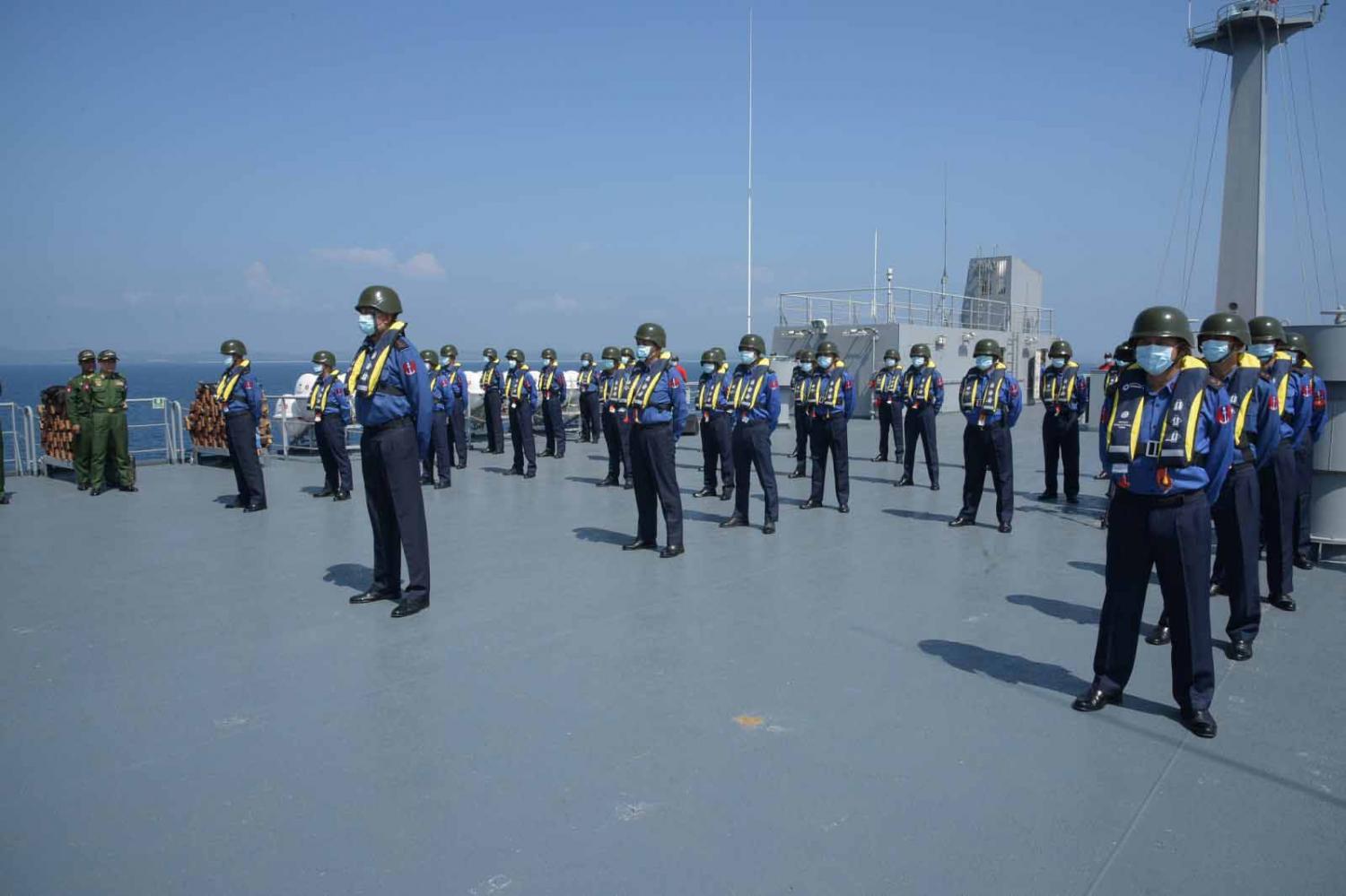 ထိုသို့ လေ့ကျင့်ဆောင်ရွက်နေမှုများအား ယနေ့တွင် နိုင်ငံတော်စီမံအုပ်ချုပ်ရေး ကောင်စီဥက္ကဋ္ဌ တပ်မတော်ကာကွယ်ရေးဦးစီးချုပ် ဗိုလ်ချုပ်မှူးကြီးမင်းအောင်လှိုင် သည် ကောင်စီအဖွဲ့ဝင် များဖြစ်ကြသည့် ဗိုလ်ချုပ်ကြီးမောင်မောင်ကျော်၊ ဒုတိယ ဗိုလ်ချုပ်ကြီး မိုးမြင့်ထွန်း၊ ကောင်စီ တွဲဖက်အတွင်းရေးမှူး ဒုတိယဗိုလ်ချုပ်ကြီး ရဲဝင်းဦး၊ စီမံကိန်း၊ ဘဏ္ဍာရေးနှင့် စက်မှုဝန်ကြီးဌာန ပြည်ထောင်စုဝန်ကြီး ဦးဝင်းရှိန်၊ ကာကွယ်ရေးဦးစီးချုပ်(ရေ) ဗိုလ်ချုပ်ကြီး မိုးအောင်၊ ကာကွယ်ရေးဦးစီးချုပ်ရုံး(ကြည်း၊ ရေ၊ လေ)မှ တပ်မတော် အရာရှိကြီးများ၊ အနောက် တောင်တိုင်းစစ်ဌာနချုပ် တိုင်းမှူး ဗိုလ်ချုပ် အောင်အောင် နှင့် တာဝန်ရှိသူများလိုက်ပါ၍ သွားရောက်ကြည့်ရှု့ စစ်ဆေး သည်။ ဦးစွာ နိုင်ငံတော်စီမံအုပ်ချုပ်ရေး ကောင်စီဥက္ကဋ္ဌ တပ်မတော်ကာကွယ်ရေးဦးစီး ချုပ်နှင့် အဖွဲ့ဝင် များသည် လေ့ကျင့်ခန်းဆောင်ရွက်နေသည့် စစ်ရေယာစဉ်များအား ကြည့်ရှုစစ်ဆေးရန် စစ်ရေ ယာစဉ်(မုတ္တမ)ပေါ်သို့ ရဟတ်ယာစဉ်ဖြင့် ဆင်းသက်ရောက်ရှိ ခဲ့ရာ (Three-Dimensional Naval Exercise-Sea Shield 2020)အား လေ့ကျင့် လျက်ရှိသည့် လေ့ကျင့်ခန်း ကြီးကြပ် ရေးမှူး(Officer Scheduling Exercise-OSE) ဗိုလ်ချုပ် ထိန်ဝင်း၊ တာဝန်ရေတပ်မမှူး ဗိုလ်မှူးကြီး တက်လွင်ထွန်းနှင့် လေ့ကျင့်ခန်း တွင်ပါဝင်သည့် အရာရှိကြီးများက ကြိုဆိုခဲ့ ကြသည်။ ထို့နောက် ကာကွယ်ရေးဦးစီး ချုပ်(ရေ)က တပ်မတော်ကာကွယ်ရေးဦးစီးချုပ်၏ လမ်းညွှန်မှာကြားချက်အတိုင်း စစ်နည်းဗျူဟာအဆင့် ဝေဟင်၊ ရေပြင်၊ ရေအောက် စစ်ဆင်မှုနှင့် ပစ်ခတ်မှု လေ့ကျင့် ခန်း (Sea Shield -2020)ကို လေ့ကျင့်ဆောင်ရွက်ရသည့် ရည်ရွယ်ချက်နှင့် ရေပြင် သွားစစ်ရေယာစဉ်များ၊ ရေငုပ်သင်္ဘောနှင့် ရဟတ်ယာစဉ်တို့အပါအဝင် စစ်မျက်နှာ သုံးဘက်မှစစ်ဆင်ခြင်း Three-Dimensional Operation လေ့ကျင့်ခဲ့မှုအခြေအနေ အား ရှင်းလင်းတင်ပြသည်။ ဆက်လက်၍ တာဝန်ရေတပ်မမှူးက လေ့ကျင့်ခန်း လက်တွေ့ ဆောင်ရွက် နေမှုများအား ရှင်းလင်းတင်ပြသည်။ ရှင်းလင်းတင်ပြမှုများ အပေါ် နိုင်ငံတော် စီမံအုပ်ချုပ်ရေးကောင်စီဥက္ကဋ္ဌ တပ်မတော်ကာကွယ်ရေးဦးစီးချုပ် က ယခုပြုလုပ်သည့် လေ့ကျင့်ခန်းသည် ပစ်ခတ်မှုလေ့ကျင့်ခန်းဖြစ်သဖြင့် ပစ်မှတ် များကို တိကျစွာထိမှန်အောင် အလေးထားလေ့ကျင့်ဆောင်ရွက်ပြီး သင်ခန်းစာ ဖော်ထုတ်ရန် လိုအပ်သည့်အခြေအနေများနှင့် လေ့ကျင့်ရေးဆိုင်ရာများလုပ်ဆောင် ရာတွင် သတင်းအချက်အလက် စုံလင်စွာရယူခြင်း၊ ပိတ်ဆို့ခြင်း၊ တားဆီးခြင်း၊ ချေမှုန်းခြင်းတို့ကို ကျယ်ကျယ်ပြန့်ပြန့်စစဉ်းစားလုပ်ဆောင်ရန် အရေးကြီးသည့် အခြေအနေများနှင့် ပတ်သက်ပြီး ပြန်လည်ဆွေးနွေး ပြောကြားသည်။ ဆက်သွယ်ဆောင်ရွက်ခဲ့ ထို့နောက် လေ့ကျင့်ခန်းမစတင်မီ စစ်ရေ