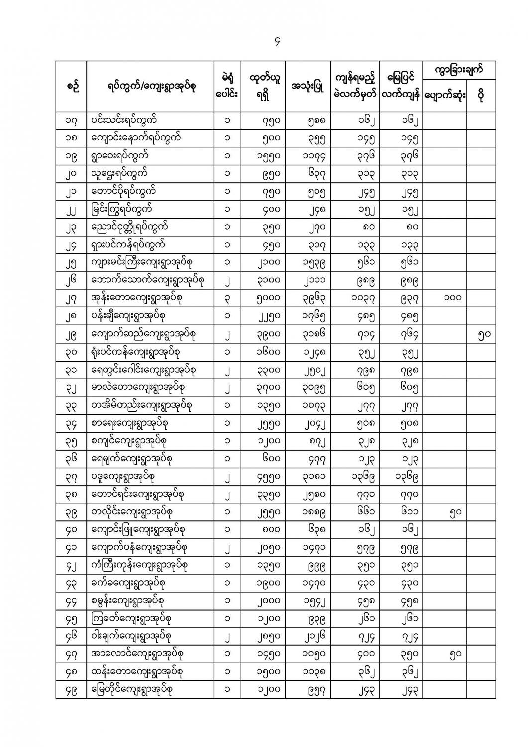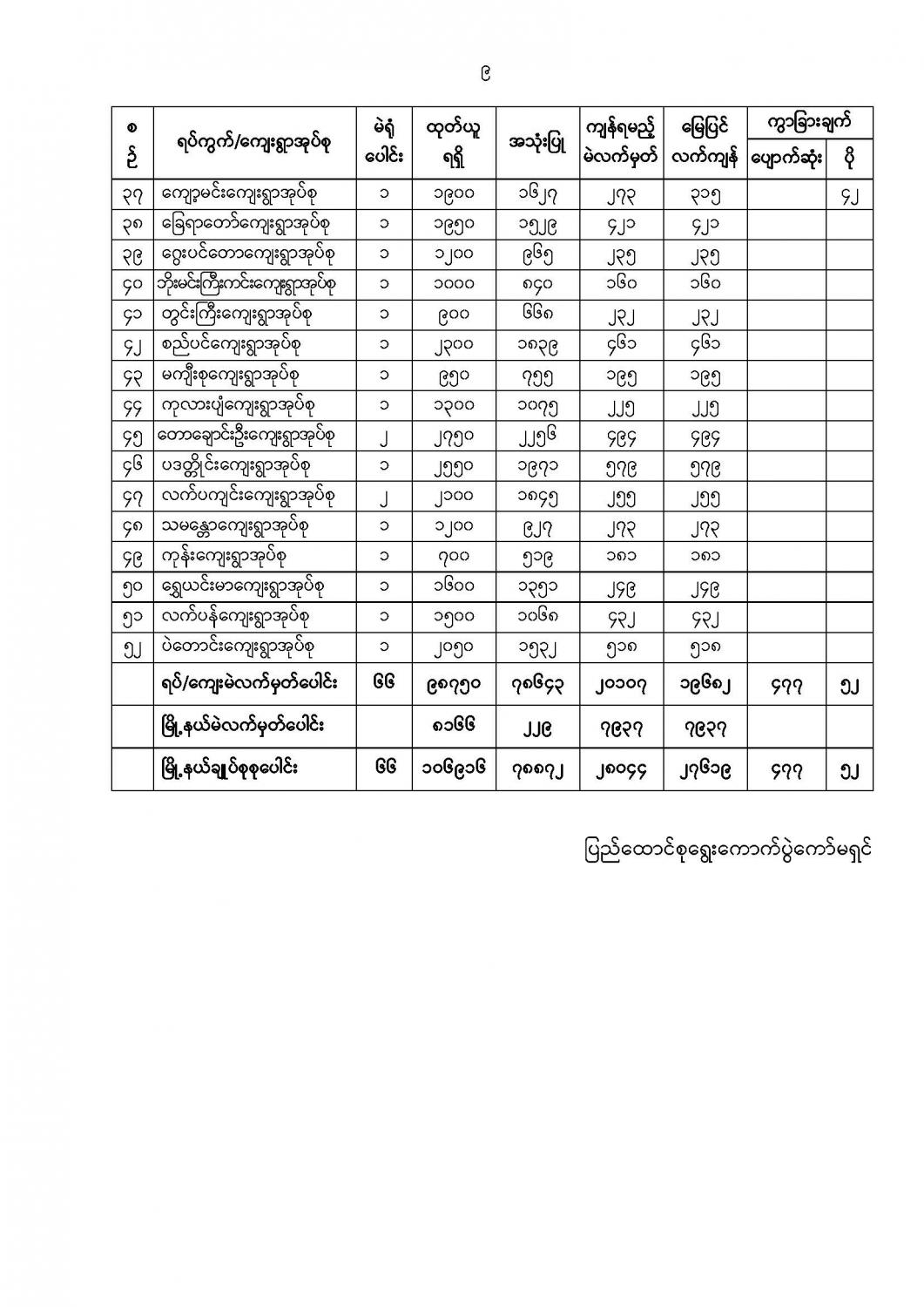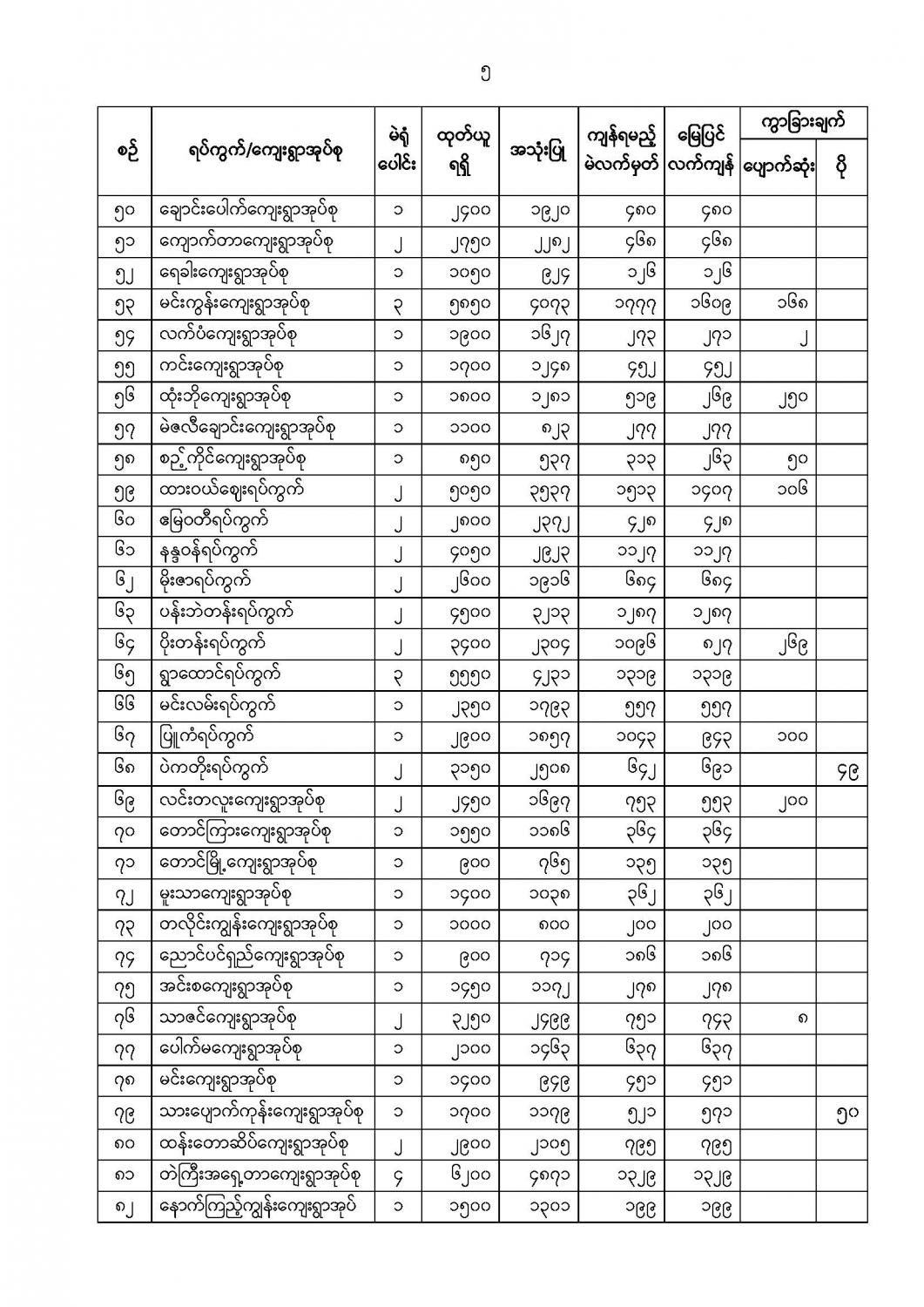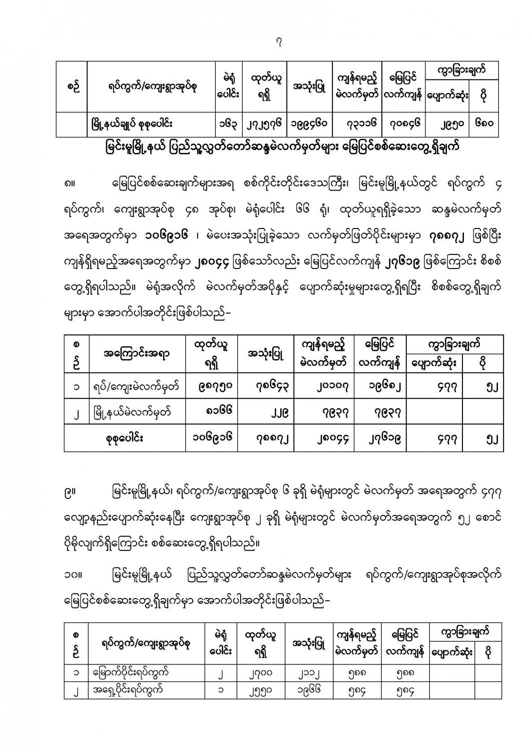 ဦးစီးဌာနနှင့် လုပ်ငန်းများ၏ ကြေညာချက်များ