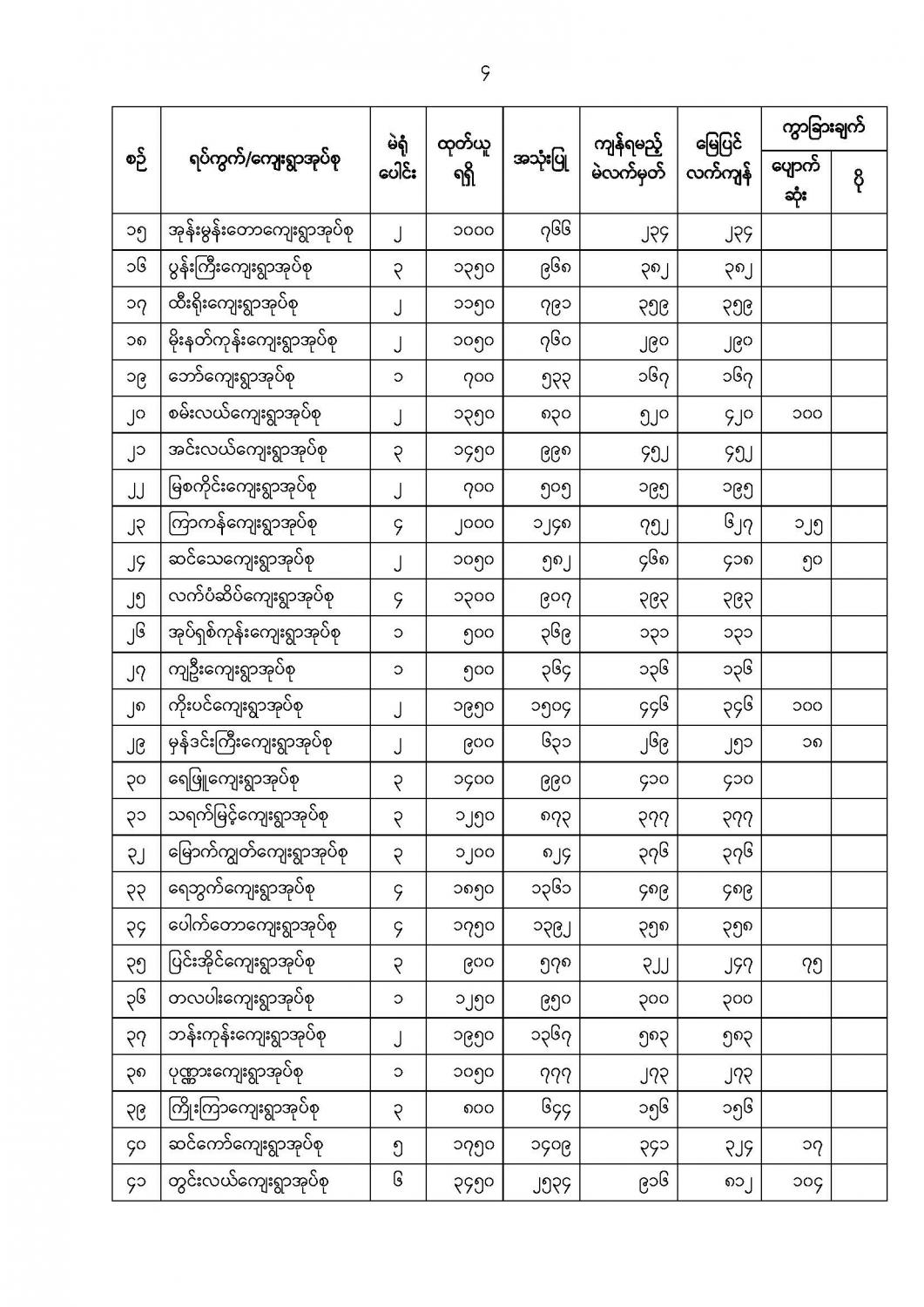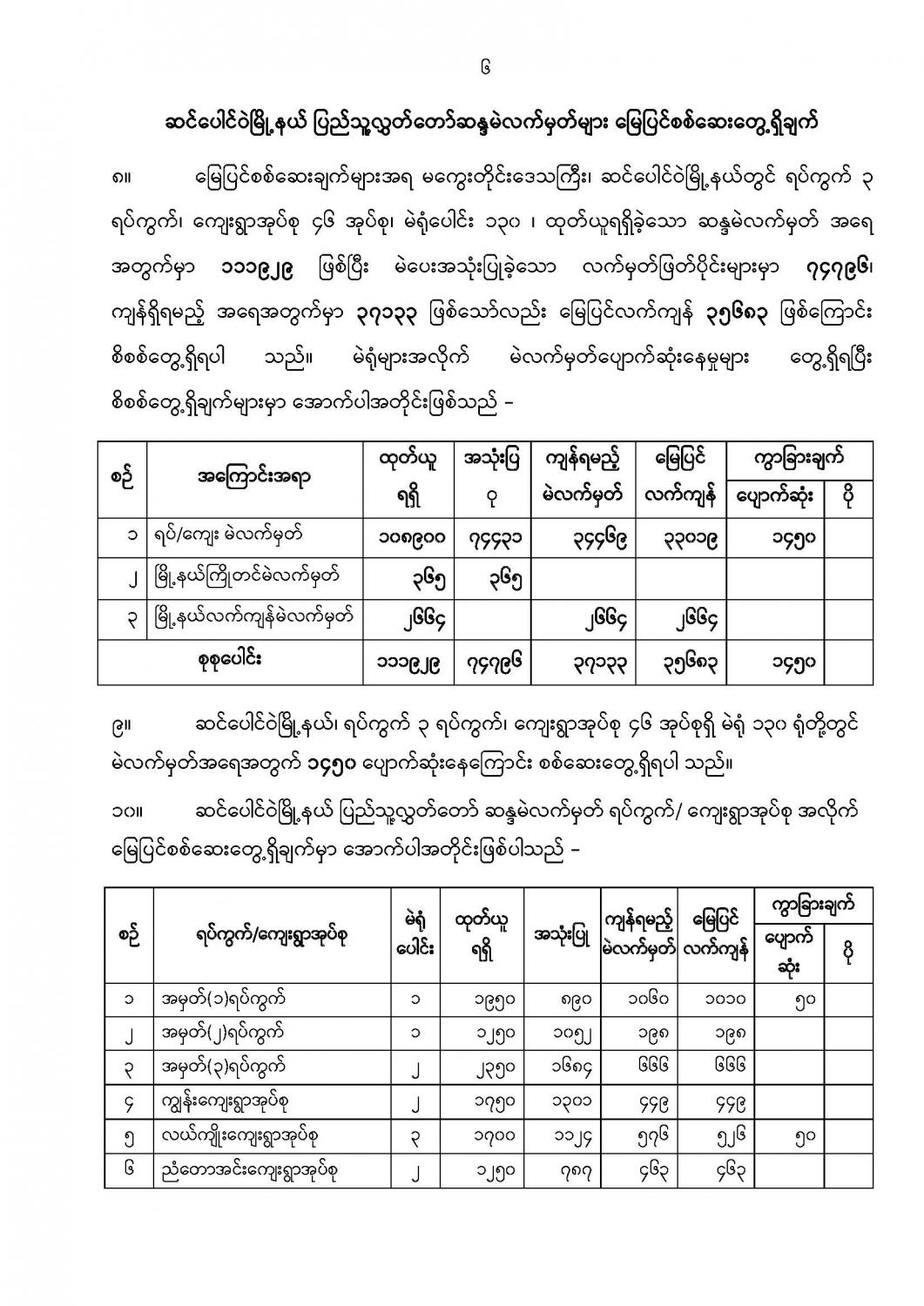 ဦးစီးဌာနနှင့် လုပ်ငန်းများ၏ ကြေညာချက်များ