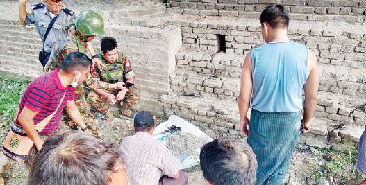 အခင်းဖြစ်ပွားရာနေရာသို့ခရိုင်စီမံအုပ်ချုပ်ရေး အဖွဲ့ ဥက္ကဋ္ဌ ဒုတိယဗိုလ်မှူးကြီး သန်းဇော်ထူး၊ တပ်နယ်မှူး ဒုတိယဗိုလ်မှူးကြီး ကျော်ကျော်ဝေ၊ မြို့နယ်အုပ်ချုပ်ရေးမှူး၊ မြို့နယ်ရဲတပ်ဖွဲ့မှူးနှင့် အမှတ် (၉၂၀) စစ်မြေပြင်အင်ဂျင်နီယာတပ်ရင်းမှ ဗိုလ်ကြီး ဇင်မောင်မောင်တို့အဖွဲ့မှ သွားရောက်၍ အဆိုပါ လက်လုပ်မိုင်းကိုစစ်ဆေးရာ မီးသတ်ဆေးဘူးအတွင်း ယမ်းမှုန့် ၄လက်မ၊ သံချောင်း ၃၅ ချောင်း၊ စက်ဘီးဘောစေ့ ၃၀၀ ခန့် တွေ့ရှိရပြီး နံနက် ၇ နာရီ မိနစ် ၂၀ တွင် ရှင်းလင်းဆောင်ရွက်ခဲ့ကြောင်း သိရ သည်။