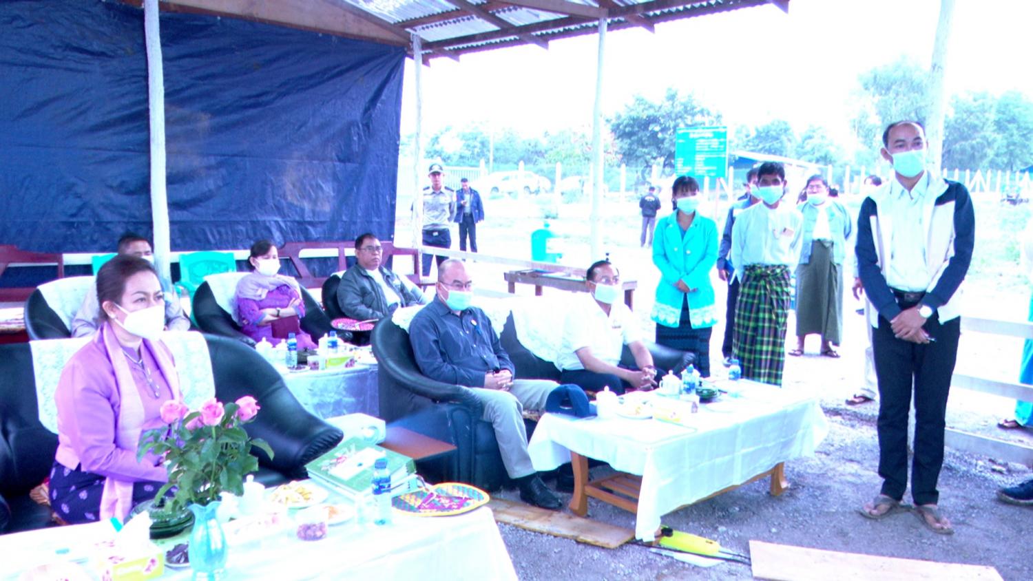 စစ်ဆေးစဉ် စခန်းအတွင်း ၂၀၂၀-၂၀၂၁ ခု၊ ဘဏ္ဍာရေးနှစ်၊ ဝန်ကြီးဌာန ဘတ်ဂျက်ဖြင့် တော်ဝင်ရွှေနန်းကုမ္ပဏီမှ ငွေကျပ်(၂၁၃ ဒသမ ၅၀၅)သန်းဖြင့် တင်ဒါအောင်မြင် ဆောက်လုပ် လျက်ရှိသော ပေ ၁၀၀x ပေ ၄၀၊ ၄ ခန်းတွဲ RC နှစ်ထပ်၊ ဝန်ထမ်းအိမ်ရာ ၅၀ရာခိုင်နှုန်း ပြီးစီးနေမှုအခြေအနေနှင့် ပိုင်ဖြိုးခန့်ကုမ္ပဏီမှ ကျပ်(၁၂၈ဒသမ၁၉၉၉)သန်းဖြင့် တင်ဒါအောင်မြင် ဆောက်လုပ် လျက်ရှိသော ပေ ၆၀x ပေ ၄၀၊ RC နှစ်ထပ်၊ စခန်းရုံး (၇၀ရာခိုင်နှုန်း) ပြီးစီးကာ လုပ်ငန်းဆောင်ရွက်နေမှု အခြေအနေများကို တာဝန်ယူဆောင်ရွက်နေသည့် ကုမ္ပဏီများမှ တာဝန်ရှိသူများက ရှင်းလင်းတင်ပြခဲ့ပြီး ပြည်ထောင်စုဝန်ကြီးနှင့် တာဝန်ရှိသူများက အဆောက်အဦ များရေရှည်တည်တံ့စေရေးအတွက် အရည်အသွေးကြံ့ခိုင် ကောင်းမွန်ရေး၊ သတ်မှတ်လျာထားသည့်အတိုင်း လုပ်ငန်းပြီးစီးအောင်ဆောင် ရွက်နိုင်ရေးတို့အတွက် အလေးထားဆောင်ရွက်ရန်မှာကြားခဲ့ပြီး လိုအပ်ချက်များကို ညှိနှိုင်းဖြည့်ဆည်း ဆောင်ရွက် ပေးခဲ့သည်။