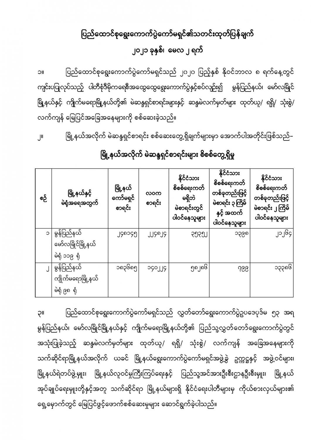 ပြည်ထောင်စုရွေးကောက်ပွဲကော်မရှင်၏သတင်းထုတ်ပြန်ချက် ၂၀၂၁ ခုနှစ်၊ မေလ ၂ ရက်