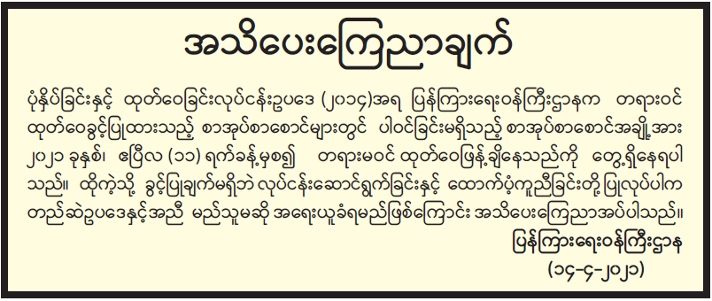 ဦးစီးဌာနနှင့် လုပ်ငန်းများ၏ ကြေညာချက်များ