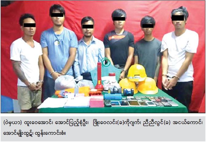 ရန်ကုန်တိုင်းဒေသကြီး၊ ရန်ကင်းမြို့နယ်ရှိ “ပို့ပို့”အာမခံစိန်ရွှေရတနာဆိုင်အား ခြောက်လှန့် လုယက်ခဲ့သည့် ပြစ်မှုကျူးလွန်သူများကို ကျူးလွန်ရာတွင်အသုံးပြုသည့် လက်နက်ခဲယမ်း၊ သက်သေခံပစ္စည်းများနှင့်အတူ ဖော်ထုတ်ဖမ်းဆီးရမိဖမ်းဆီးရမိခဲ့ကြောင်း သိရသည်။