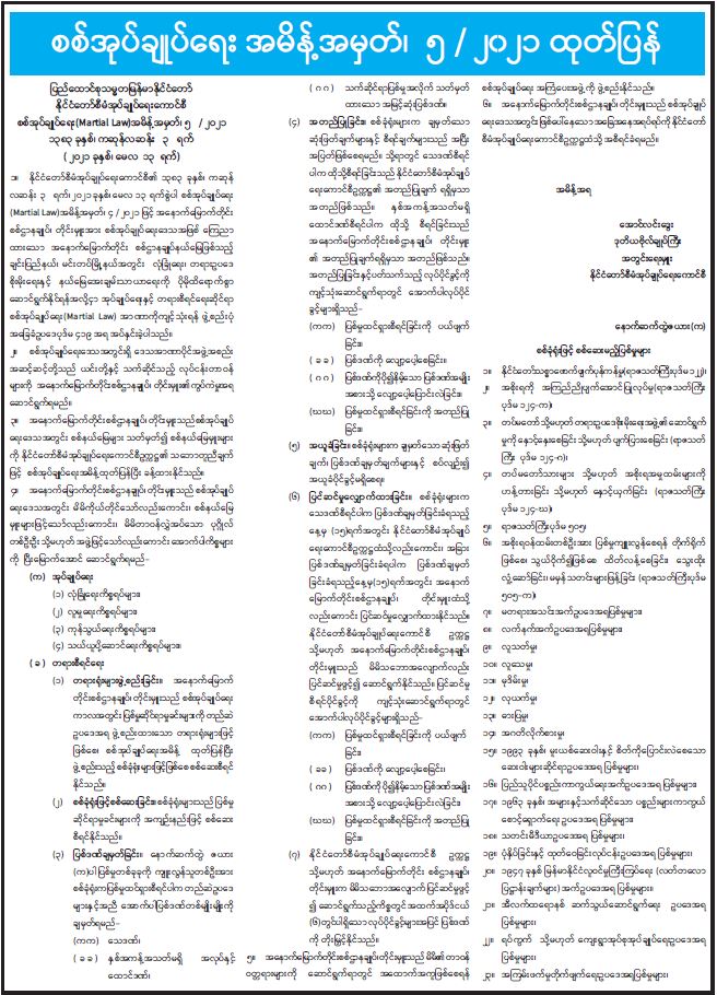 စစ်အုပ်ချုပ်ရေးအမိန့် အမှတ် ၅/၂၀၂၁ ထုတ်ပြန်ချက်