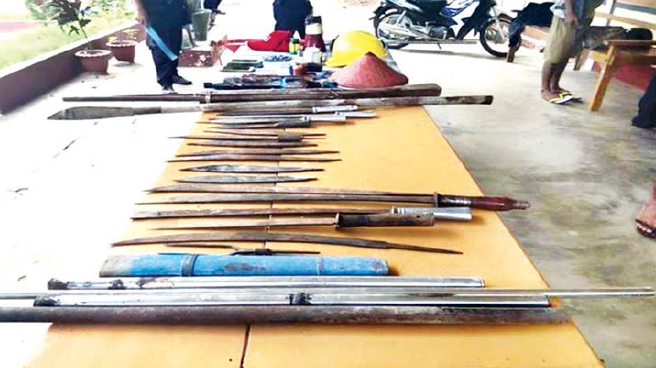ထို့သို့ သွားရောက်စစ်ဆေးခဲ့ရာ အဆိုပါကွင်းပြင်၌ ယာယီတဲ ၆ လုံးအား တွေ့ရှိရပြီး ဝင်ရောက်စစ်ဆေးခဲ့ရာ တဲများအတွင်းမှ အကြမ်းဖက်သူများအား မတွေ့ရှိရဘဲ တူမီးသေနတ်မျိုးစုံ ၁၁ လက်၊ တူမီးသေနတ် ပြုလုပ်ရန် ပြုလုပ်ထားသည့် ပြောင်းအရှည် ၁၀၆ ခု၊ ပြောင်းအတို ၅၃ ခု၊ တူမီးသေနတ် သစ်သားဒင် ၉၃ ခု၊ လက်လုပ်မိုင်း ၁၁ လုံး၊ မိုင်းပြုလုပ်ရန် ပိုင်းဖြတ်ထားသည့် အရှည် ၁ ပေခန့်ရှိ သံပိုက် ၃၀ ချောင်း၊ သတ္ထုကွင်း ၄၅ ခု၊ ယမ်းထောင်းသတ္ထုဆုံ ၇ လုံး၊ ကားမိုင်းပြုလုပ်မည့် သံကွင်းအကြီး ၅ ခု၊ ကန့် ၃ ကီလိုခန့်ပါ သံပုံး ၁ ပုံး၊ ယမ်းမဲ ၂ ကီလိုခန့်ပါ သံပုံး ၁ ပုံး၊ ခဲဝရိန်ဆော်စက် ၁ လုံးတို့အား တွေ့ရှိသိမ်းဆည်းရမိခဲ့ကြောင်းနှင့် အဆိုပါလက်နက်၊ ပစ္စည်းများအား ပြုလုပ် ဆောင်ရွက်ရာတွင် ပူးပေါင်းပါဝင်ပတ်သက်သူများအား ဖော်ထုတ်ဖမ်းဆီးရမိနိုင်ရေး လုံခြုံရေး တပ်ဖွဲ့ဝင်များက စစ်ဆေးမှုများ ဆက်လက်ဆောင်ရွက်လျက်ရှိကြောင်း သိရသည်။