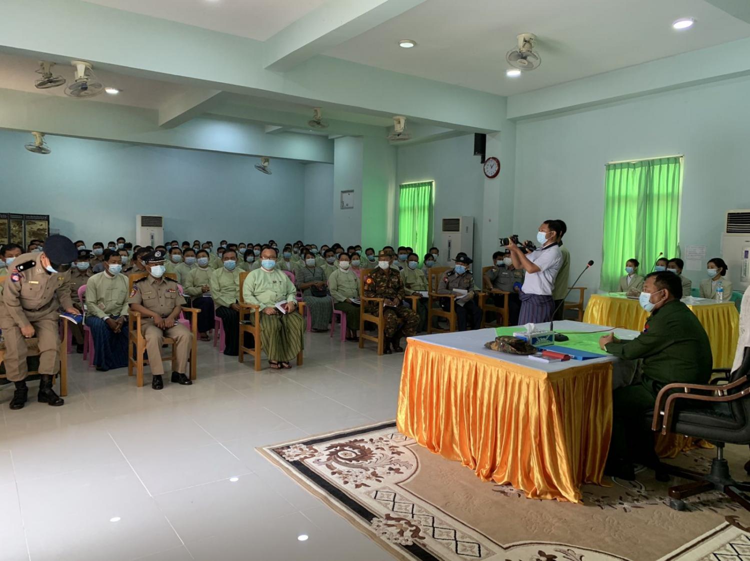 တွေ့ဆုံပွဲတွင် နိုင်ငံတော်စီမံအုပ်ချုပ်ရေးကောင်စီ တာဝန်ယူခဲ့ရသည့် အခြေအနေများ၊ ရှေ့လုပ်ငန်းစဉ်များ၊ နယ်မြေအတွင်း လက်ရှိဖြစ်ပေါ်နေသည့် အခြေအနေများ၊ လုံခြုံရေး ဆိုင်ရာ ဆောင်ရွက်ရမည့်အခြေအနေများနှင့် မိသားစုသက်သာချောင်ချိရေး ကိစ္စရပ်များကို အသေးစိတ် မှာကြားကာ တပ်ဖွဲ့ဝင်နှင့် မိသားစုများအတွက် စားသောက်ဖွယ်ရာပစ္စည်းများ ထောက်ပံ့ပေးအပ်သည်။