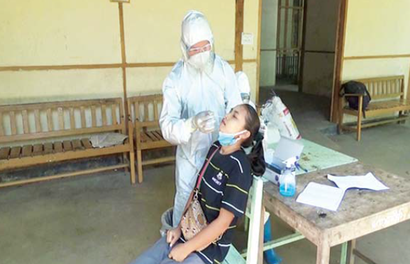 ထိုသို့ Quarantine ထားရှိသည့် ပြည်ပမှ ပြန်လည်ဝင်ရောက်လာသူ ၄၀ ကို ယနေ့နံနက်ပိုင်းတွင် အရှေ့တောင် တိုင်းစစ်ဌာနချုပ်၊ နယ်မြေခံတပ်မတော် ဆေးရုံမှ ဆရာဝန်များ၊ ပါရဂူများ၊ ဆေးမှူးများနှင့် သူနာပြုများက မြို့နယ် စီမံအုပ်ချုပ်ရေးကောင်စီ အဖွဲ့ဝင်များ၊ လူမှုရေး အသင်းအဖွဲ့များနှင့်ပူးပေါင်း၍ နှာခေါင်းတို့ဖတ်၊ အာခေါင်တို့ဖတ် ရယူ ခြင်း၊ RDT နည်းဖြင့် စစ်ဆေးခြင်းများကို ဆက်လက်ဆောင်ရွက် ပေးသည်။