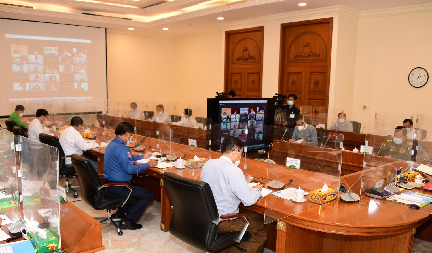 စာရင်းအင်းအချက်အလက်မှန်ကန်ရေးနှင့် အရည်အသွေးပြည့်ဝရေး ဗဟိုကော်မတီ (၁/၂၀၂၁) အစည်းအဝေးကို ယနေ့မွန်းလွဲပိုင်းတွင် နိုင်ငံတော်စီမံအုပ်ချုပ်ရေးကောင်စီ ဥက္ကဋ္ဌရုံး အစည်းအဝေးခန်းမ၌ ကျင်းပရာ စာရင်းအင်းအချက်အလက် မှန်ကန်ရေးနှင့် အရည်အသွေးပြည့်ဝရေး ဗဟိုကော်မတီဥက္ကဋ္ဌ၊ နိုင်ငံတော်စီမံအုပ်ချုပ်ရေးကောင်စီ ဒုတိယ ဥက္ကဋ္ဌ၊ ဒုတိယ တပ်မတော်ကာကွယ်ရေးဦးစီးချုပ်၊ ကာကွယ်ရေးဦးစီးချုပ်(ကြည်း) ဒုတိယ ဗိုလ်ချုပ်မှူးကြီး စိုးဝင်း တက်ရောက်အမှာစကား ပြောကြားသည်။