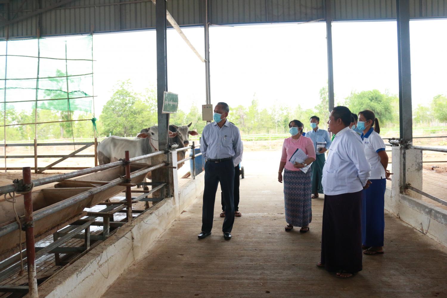 ဆက်လက်၍ ပြည်ထောင်စုဝန်ကြီးသည် မြန်မာနိုင်ငံ ရင်းနှီးမြှုပ်နှံမှုကော်မရှင်၏ ခွင့်ပြုမိန့်ဖြင့် ဆောင်ရွက်လျက်ရှိသော မကွေးခရိုင်၊ မြို့သစ်မြို့နယ်၊ ရေပြည့်ကျေးရွာအုပ်စုရှိ ရာနှုန်းပြည့် မြန်မာနိုင်ငံသားရင်းနှီးမြှုပ်နှံမှုလုပ်ငန်းဖြစ်သော Good Brothers’ Co.,Ltd ၏ နွားသား စပ်မွေးမြူခြင်းနှင့် ရောင်းချခြင်းလုပ်ငန်းသို့ ရောက်ရှိရာ ကုမ္ပဏီ၏ အရောင်းတာဝန်ခံ ဦးမျိုးမြင့်ထွန်းက လုပ်ငန်းဆောင်ရွက်နေမှုများနှင့် ရင်းနှီးမြှုပ်နှံမှုဆိုင်ရာ ကိစ္စရပ်များကို ရှင်းလင်းတင်ပြပြီး ပြည်ထောင်စုဝန်ကြီးက လုပ်ငန်းများတိုးချဲ့ဆောင်ရွက်နိုင်ရေး၊ ဒေသခံ တောင်သူများနှင့် နွားမွေးဖက်ပေးလုပ်ငန်းများ ချဲ့ထွင်ဆောင်ရွက်နိုင်ရေး၊ အခြားမြို့နယ် များသို့လည်း နွားမွေးမြူရေးတိုးချဲ့ဆောင်ရွက်နိုင်ရေးနှင့် ပြည်ပသို့ တိုးချဲ့တင်ပို့နိုင်ရေးတို့နှင့် စပ်လျဉ်း၍ ဆွေးနွေးပြောကြားခဲ့ပြီး လိုအပ်သည်များ ဆွေးနွေးပေါင်းစပ်ညှိနှိုင်းပေးကာ မွေးမြူရေးခြံ အတွင်း လှည့်လည် ကြည့်ရှုအားပေးခဲ့ကြောင်း သိရသည်။