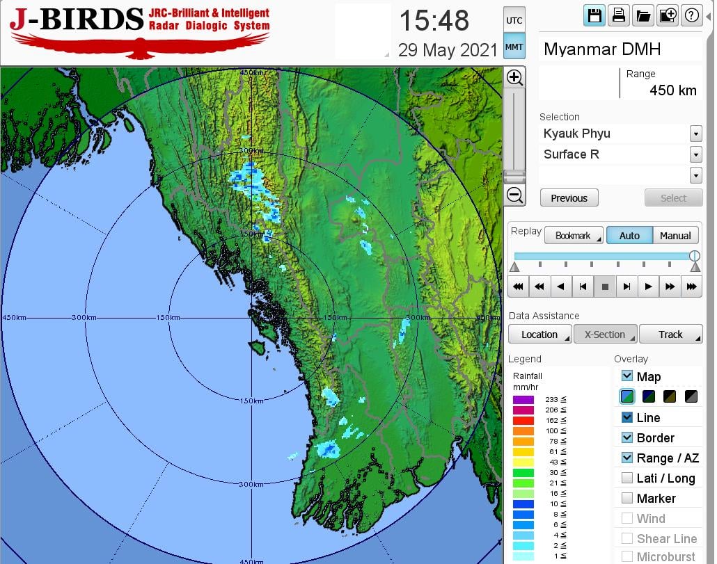 မိုးလေဝသနှင့် ဇလဗေဒညွှန်ကြားမှုဦးစီးဌာနမှ (၂၀၂၁ ခုနှစ်၊ မေလ (၂၉)ရက်နေ့ ညနေ(၄:၀၀) နာရီအချိန် ထုတ်ပြန်ချက်) ဘင်္ဂလားပင်လယ်အော် အခြေအနေ။ ကပ္ပလီပင်လယ်ပြင်၊ ဘင်္ဂလားပင်လယ်အော် တောင်ပိုင်းနှင့် အရှေ့အလယ်ပိုင်းတို့တွင် မုတ်သုံလေ အားအသင့်အတင့်မှ အားကောင်းနေပြီး၊ ကျန်ဘင်္ဂလားပင်လယ်အော်တွင် တိမ်အနည်းငယ် ဖြစ်ထွန်းနေပါသည်။ မနက်ဖြန်နံနက်အထိ ခန့်မှန်းချက်။ တနင်္သာရီတိုင်းဒေသကြီး၊ ကရင်ပြည်နယ်နှင့် မွန်ပြည်နယ် တို့တွင် နေရာအနှံ့အပြား၊ ပဲခူးတိုင်းဒေသကြီး၊ ရန်ကုန်တိုင်းဒေသကြီး၊ ဧရာဝတီတိုင်းဒေသကြီး၊ ရှမ်းပြည်နယ်(တောင်ပိုင်းနှင့် အရှေ့ပိုင်း)နှင့် ကယားပြည်နယ်တို့တွင် နေရာစိပ်စိပ်၊ နေပြည်တော်၊ မန္တလေးတိုင်းဒေသကြီး၊ ကချင်ပြည်နယ်နှင့် ချင်းပြည်နယ်တို့တွင် နေရာကျဲကျဲ နှင့် ကျန်တိုင်းဒေသကြီးနှင့် ပြည်နယ်တို့တွင် နေရာကွက်ကျား မိုးထစ်ချုန်းရွာပြီး၊ တနင်္သာရီ တိုင်းဒေသကြီးတွင် နေရာကွက်၍ မိုးကြီးနိုင်ပါသည်။ ရွာရန်ရာနှုန်း(၈၀) ဖြစ်ပါသည်။ မြန်မာ့ပင်လယ်ပြင်။ မြန်မာ့ကမ်းရိုးတန်း တစ်လျှောက်နှင့် ကမ်းလွန်ပင်လယ်ပြင်တို့တွင် တစ်ခါတစ်ရံ မိုးသက်လေပြင်းများကျရောက်ပြီး လှိုင်းအသင့်အတင့်မှ လှိုင်းကြီးနိုင်ပါသည်။ မိုးသက်လေပြင်းကျစဉ် ရေပြင်/မြေပြင်လေသည် တစ်နာရီလျှင် မိုင်(၃၀)မှ (၃၅)မိုင်အထိ တိုက်ခတ်နိုင်ပါသည်။ လှိုင်းအမြင့်မှာ မြန်မာ့ကမ်းရိုးတန်း တစ်လျှောက်နှင့် ကမ်းလွန် ပင်လယ်ပြင်တို့တွင် (၆)ပေမှ (၉)ပေခန့်ရှိနိုင်ပါသည်။ နောက်(၂)ရက်အတွက် ခန့်မှန်းချက်။ အနောက်တောင်မုတ်သုံလေသည် မြန်မာနိုင်ငံ အလယ်ပိုင်း ဒေသများသို့ ဝင်ရောက်နိုင်ပါသည်။ နေပြည်တော်နှင့် အနီးတစ်ဝိုက်အတွက် မနက်ဖြန်နံနက်အထိ ခန့်မှန်းချက်။ နေရာကွက်ကျား မိုးထစ်ချုန်းရွာမည်။ ရွာရန်ရာနှုန်း(၈၀) ဖြစ်ပါသည်။ ရန်ကုန်မြို့နှင့် အနီးတစ်ဝိုက်အတွက် မနက်ဖြန်နံနက်အထိ ခန့်မှန်းချက်။ မိုးတစ်ကြိမ်၊ နှစ်ကြိမ် ထစ်ချုန်းရွာမည်။ ရွာရန်ရာနှုန်းပြည့် ဖြစ်ပါသည်။ မန္တလေးမြို့နှင့် အနီးတစ်ဝိုက်အတွက် မနက်ဖြန်နံနက်အထိ ခန့်မှန်းချက်။ နေရာကွက်ကျား မိုးထစ်ချုန်းရွာနိုင်ပါသည်။ ရွာရန်ရာနှုန်း(၆၀) ဖြစ်ပါသည်။ #မိုးလေဝသနှင့် ဇလဗေဒညွှန်ကြားမှုဦးစီးဌာန