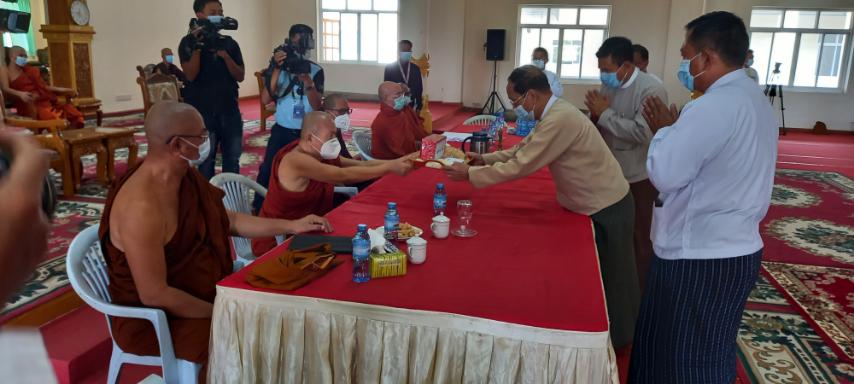 ထို့နောက် ပြည်ထောင်စုဝန်ကြီးက နိုင်ငံတော်အစိုးရအနေဖြင့် ပရိယတ္တိသာသနာတော်ဆိုင်ရာ စာမေးပွဲများကို နိုင်ငံတော် သံဃမဟာ နာယကအဖွဲ့ ဆရာတော်ကြီးများ၏ ဆုံးဖြတ်ချက် ဩဝါဒနှင့်အညီ ကျင်းပနိုင်ရေး စီစဉ်ဆောင်ရွက်လျက်ရှိပါကြောင်း၊ တိပိဋကဓရ၊ တိပိဋကကောဝိဒ ရွေးချယ်ရေးစာမေးပွဲ(သဘောရေးဖြေ) စာမေးပွဲကိုလည်း အောင်မြင်စွာ ကျင်းပနိုင်ခဲ့ပါကြောင်း၊ ယခုအစိုးရ ဓမ္မာစရိယစာမေးပွဲနှင့် ပထမပြန် စာမေးပွဲ များကို နေပြည်တော်၊ တိုင်းဒေသကြီး/ပြည်နယ် အသီးသီးရှိ စာဖြေဌာနများတွင် တချိန်တည်း တစ်ပြိုင်တည်း ကျင်းပလျက်ရှိပါကြောင်း၊ နိုင်ငံတော်သံဃမဟာ နာယကအဖွဲ့ ဆရာတော်ကြီးများ၏ ဆုံးဖြတ်ချက်ဩဝါဒနှင့်အညီ နိကာယ်စာမေးပွဲများကိုလည်း မကြာမီ ဇွန်လတတိယပတ်တွင် ကျင်းပမည်ဖြစ်ပါကြောင်း လျှောက်ထားသည်။ ဆက်လက်၍ အစိုးရ ဓမ္မာစရိယစာမေးပွဲဖြေဆိုတော်မူကြသော သံဃာတော်များနှင့် သီလရှင်များအား လှည့်လည်ဖူးမြော် ကြည်ညိုသည်။