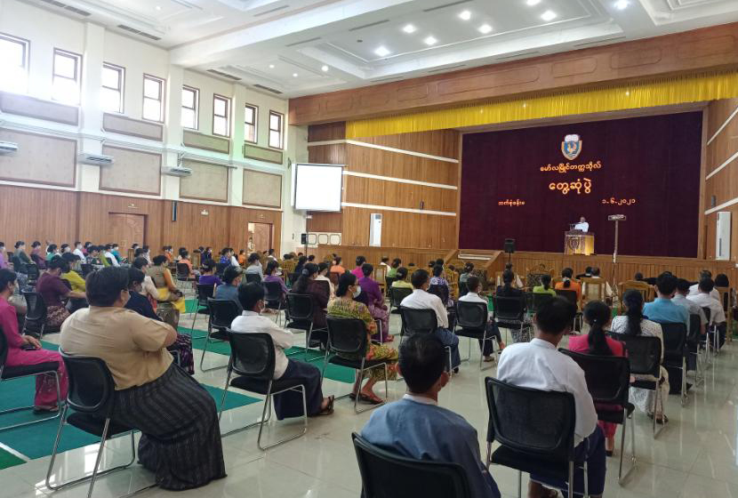 ပညာရေးဝန်ကြီးဌာန ပြည်ထောင်စုဝန်ကြီး ဒေါက်တာညွန့်ဖေ မော်လမြိုင်တက္ကသိုလ်တွင် ပညာရေး ဝန်ထမ်းများနှင့်တွေ့ဆုံ