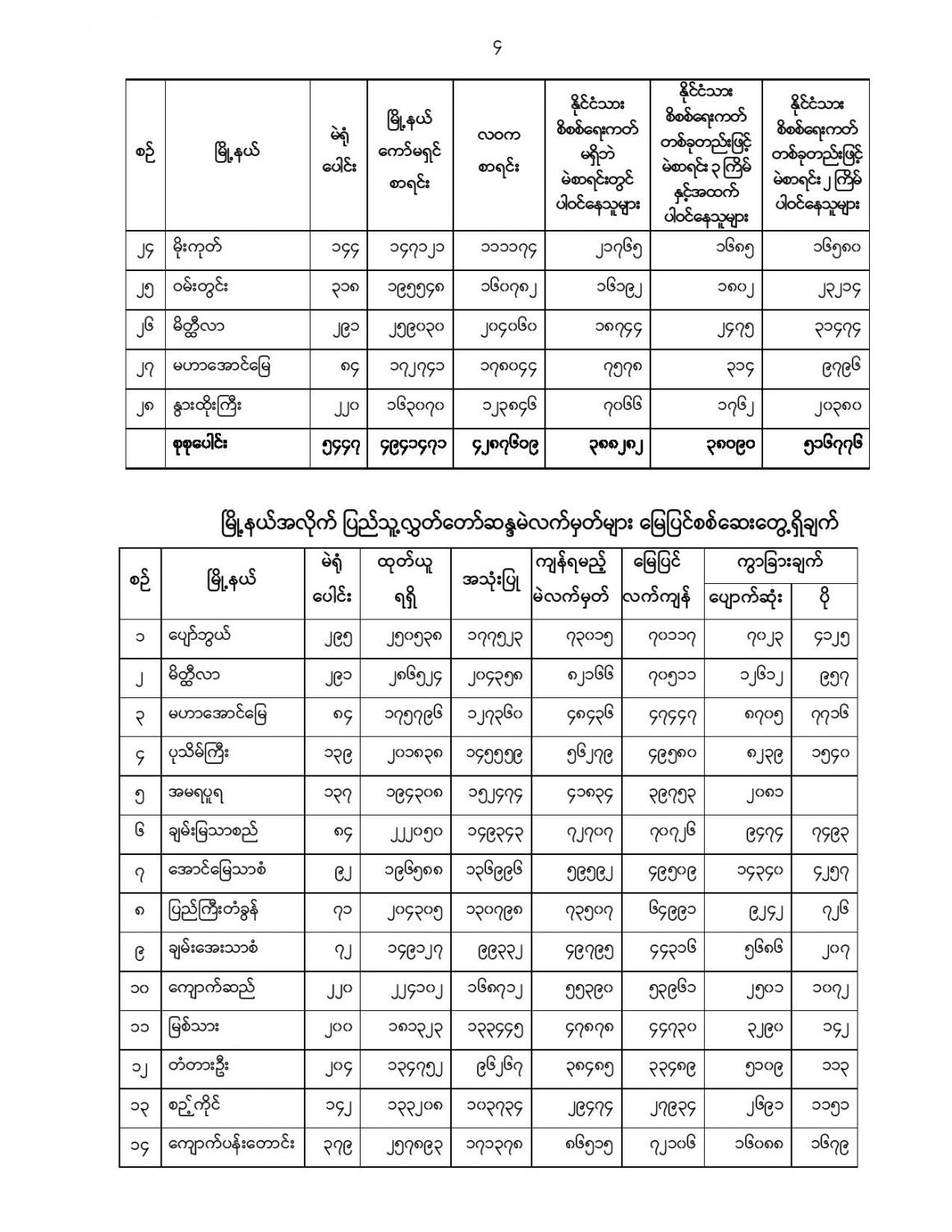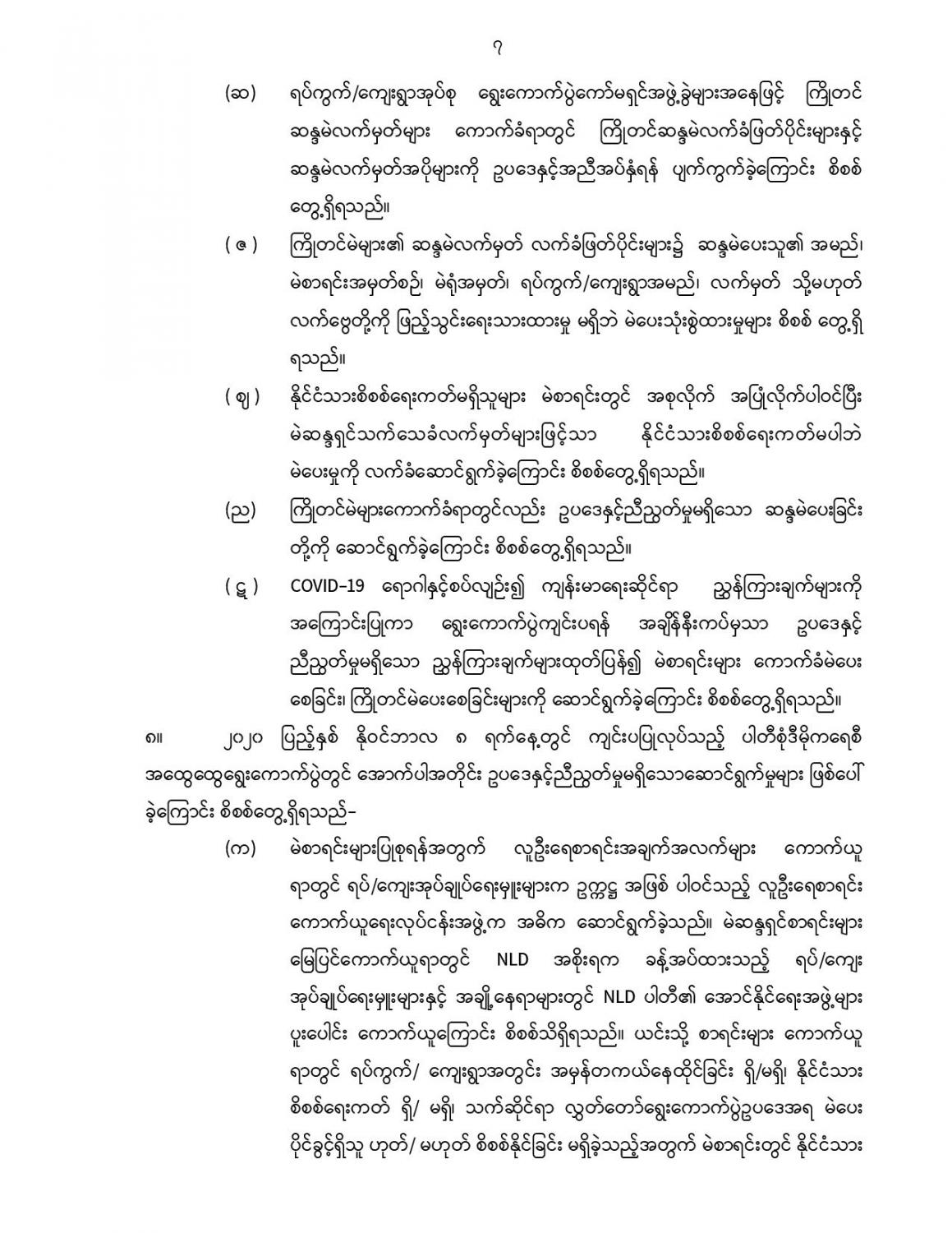 ဦးစီးဌာနနှင့် လုပ်ငန်းများ၏ ကြေညာချက်များ