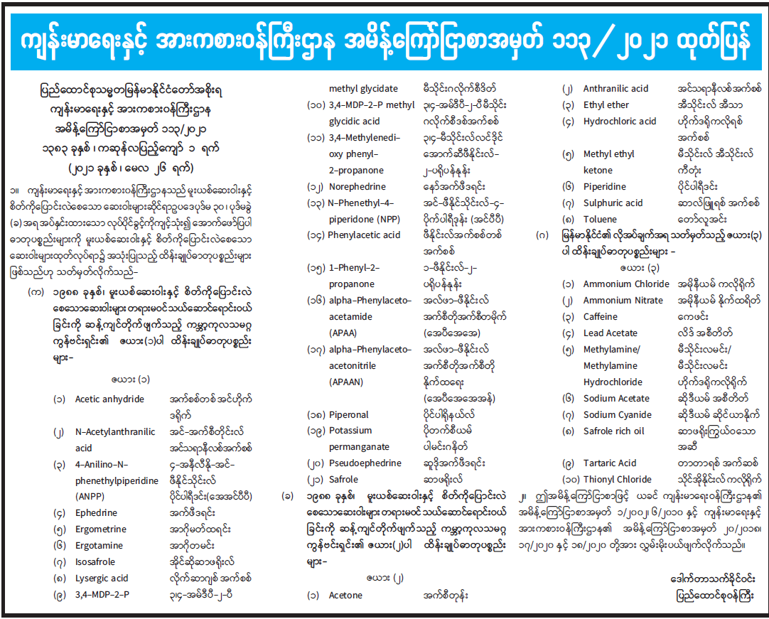 ကျန်းမာရေးနှင့် အားကစားဝန်ကြီးဌာန အမိန့်ကြော်ငြာစာအမှတ် ၁၁၃/၂၀၂၁ ထုတ်ပြန်