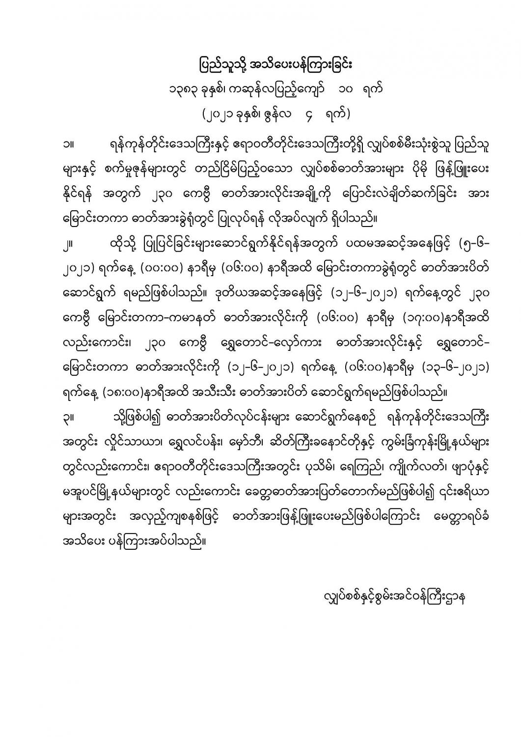 ဝန်ကြီးဌာန ကြေညာချက်များ