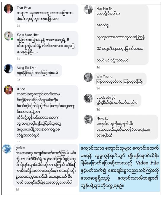အဆိုပါ Video File နှင့်ပတ်သက်၍လည်း အေးချမ်းစွာပညာသင်ကြားလိုသော ဆန္ဒရှိသည့် ကျောင်းသား မိဘများက ရွံရှာ စက်ဆုပ်သည့် Comment များကိုလည်းတွေ့ရှိရမည်ဖြစ်ပါသည်-