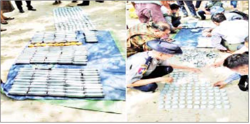 ဆက်လက်၍ လုံခြုံရေးတပ်ဖွဲ့ဝင်များသည် အဆိုပါမြေအောက်ခန်းအတွင်း အသေးစိတ် ရှာဖွေစစ်ဆေးခဲ့ရာ မြေအောက်ခန်းအတွင်းမှ ပေါက်ကွဲထားသည့် လက်လုပ်မိုင်း ၄၀ လုံး၊ သံပိုက်ဖြင့် ပြုလုပ်ထားသည့် လက်လုပ်မိုင်း ၁၂၇ လုံး၊ ယမ်းကြိုးတပ်ဆင်ပြီး လက်လုပ်မိုင်း ၃၂ လုံး၊ လက်လုပ်မိုင်း ကိုယ်ထည်အလွတ် ၄၆ လုံး၊ လက်လုပ်မိုင်းကိုယ်ထည်အဖုံး ၂၅၄ ခု၊ ဒီဇယ်ရောစပ်ပြီး အမိုးနီးယား နိုက်ထရိတ် ၅ ပိဿာ၊ ကန့်မှုန့်မျိုးစုံ ၅ ပိဿာ၊ လျှပ်စစ်စနက်တံ ၁၅ ချောင်း၊ ယမ်းကြိုး ၅၀ ချောင်းနှင့် မီးချောင်း ၂ ချောင်းတို့အား တွေ့ရှိသိမ်းဆည်းရရှိခဲ့သဖြင့် လက်လုပ်မိုင်းများအား သက်မဲ့ပြုလုပ် သိမ်းဆည်းခဲ့သည်။