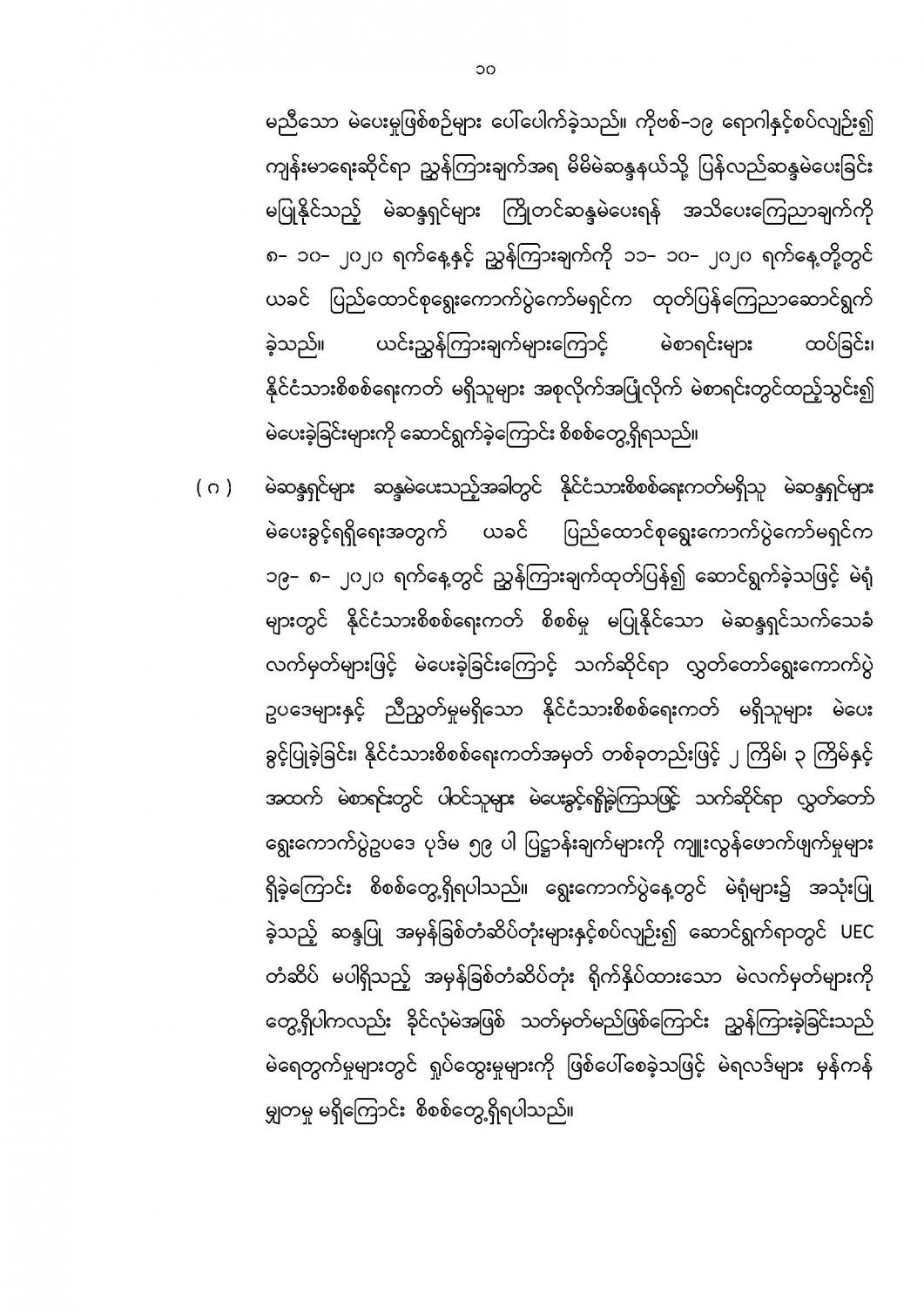 ပြည်ထောင်စုရွေးကောက်ပွဲကော်မရှင်၏သတင်းထုတ်ပြန်ချက် ၂၀၂၁ ခုနှစ်၊ ဇွန် လ ၈ ရက်