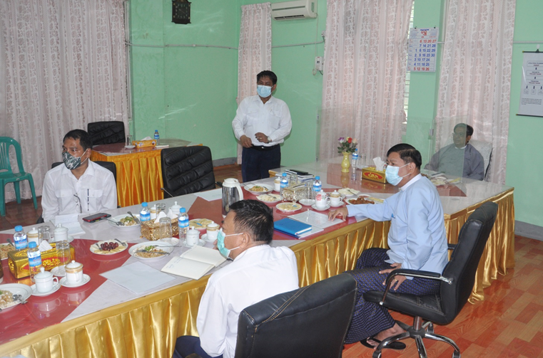 စက်မှုဝန်ကြီးဌာန ပြည်ထောင်စုဝန်ကြီး ဒေါက်တာချာလီသန်းသည် ယမန်နေ့နံနက်ပိုင်းတွင် ရန်ကုန်တိုင်းဒေသကြီး စက်မှုကြီးကြပ်ရေးနှင့် စစ်ဆေးရေးဦးစီးဌာနသို့ ရောက်ရှိပြီး တိုင်းဒေသကြီး ဦးစီးမှူးက လုပ်ငန်း အကောင်အထည်ဖော်ဆောင်ရွက်နေမှုများကို ရှင်းလင်းတင်ပြသည်။