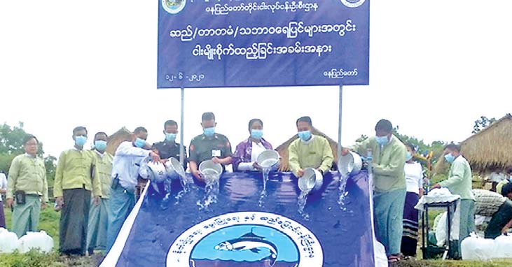 ဉတ္တရသီရိမြို့နယ် ဆင်လူးငန်းစပ်ဆည်အတွင်း ငါးမျိုးများစိုက်ထည့်