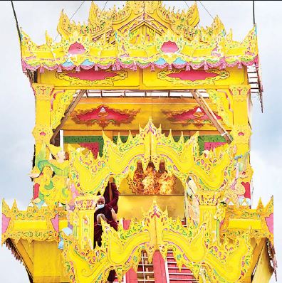 ဆက်လက်ပြီး ရုပ်ကလာပ်တော်အား လောင်တိုက်တော်ပေါ်သို့ ကြွချီတော်မူ ပါမည့်အကြောင်း အဘိယာစန နိမန္တနဂါထာဖြင့် တောင်းပန်လျှောက်ထားပြီး ဆရာတော်ကြီး၏ ရုပ်ကလာပ်တော်အား လောင်တိုက်ပေါ်သို့ အစီအစဉ်အတိုင်း ပင့်ဆောင်ကြသည်။ ထို့နောက် နိုင်ငံတော် စီမံအုပ်ချုပ်ရေးကောင်စီဥက္ကဋ္ဌ၊ ဒုတိယ ဥက္ကဋ္ဌနှင့် အခမ်းအနားတက်ရောက်လာကြသူများက ဆရာတော်ကြီး၏ ရုပ်ကလာပ် တော်အား ဖူးမြော်ကြည်ညိုကြသည်။ ယင်းနောက် သံဃာတော်အရှင်သူမြတ်များ ဦးဆောင်၍ အနိစ္စာ ဝတ သင်္ခါရာ အစချီသော သံဝေဂသုံးဂါထာကို ရွတ်ဆိုပွားများပြီး သာဓုသုံးကြိမ်ခေါ်ဆို၍ ဆရာတော်ကြီး၏ ရုပ်ကလာပ်တော်အား အဂ္ဂိဈာပန တေဇောဓာတ်ဖြင့် ပူဇော်ခဲ့သည်။