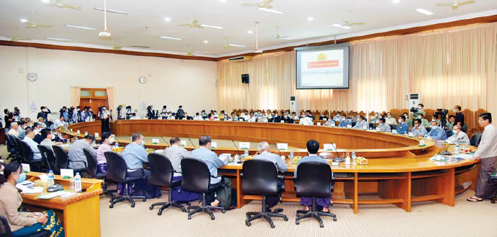 ပြည်ထောင်စု ရွေးကောက်ပွဲ ကော်မရှင်နှင့် နိုင်ငံရေးပါတီများ တွေ့ဆုံ ညှိနှိုင်း အစည်းအဝေးကို မေလ ၂၁ ရက် တွင်ကျင်းပရာ နိုင်ငံရေးပါတီများက တရားဥပဒေ စိုးမိုးရေးနှင့် လုံခြုံရေးကိစ္စ ရပ်များတွင် ကော်မရှင်အနေဖြင့် ထောက်ပံ့ကူညီပေးရေး၊ ရွေးကောက်ပွဲ စနစ် ပြောင်းလဲကျင့်သုံးရေးနှင့် ကျင့်သုံး ရာတွင် မြန်မာနိုင်ငံနှင့် ကိုက်ညီသည့် စနစ်ဖြစ်စေရန် အထူးဂရုပြု ဆောင်ရွက် သွားရေး၊ တည်ဆဲဥပဒေများ ချိုးဖောက် ၍ မဲမသမာမှုဆောင်ရွက်ခဲ့သည့် ပါတီ အားဥပဒေနှင့်အညီ အရေးယူဆောင်ရွက် ရေးနှင့် အချိုးကျကိုယ်စားပြုစနစ် (PR) နှင့်စပ်လျဉ်း၍ တင်ပြဆွေးနွေး အကြံပြု ကြရာ ပြည်ထောင်စုရွေးကောက်ပွဲ ကော်မရှင်ဥက္ကဋ္ဌက ပြန်လည်ရှင်းလင်း ဆွေးနွေးခဲ့သည်ကို မြင်တွေ့ရသည်။