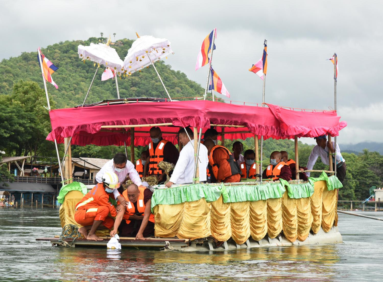 ထို့နောက် ဆရာတော်ကြီး၏ သရီရဓာတ်ပြာတော် ရတနာရွှေအိုး၊ ငွေအိုးများကို ဆရာတော်၊ သံဃာတော်များ၊ ဆွေတော်၊ မျိုးတော်များ၊ တပည့်ဒါယကာ၊ ဒါယိကာမများက ပေါင်းလောင်းမြစ် ဆိပ်ကမ်းရှိ အသင့်ဆိုက်ကပ်ထားသော ရေယာဉ်ပေါ်သို့ ပင့်ဆောင်ကြသည်။