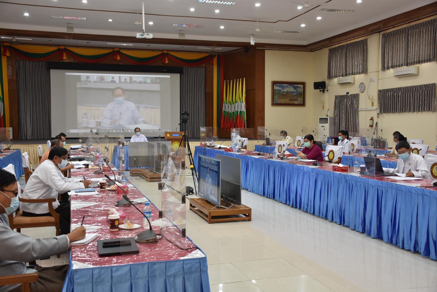 နေပြည်တော် ဇွန် ၁၅ ကိုဗစ်-၁၉ ရောဂါ ကာကွယ်ထိန်းချုပ်ရေး လုပ်ငန်းညှိနှိုင်းအစည်းအဝေးကို ယနေ့ နံနက် ပိုင်းတွင် ကျန်းမာရေးနှင့် အားကစားဝန်ကြီးဌာန၊ ရုံးအမှတ်(၄) အစည်းအဝေးခန်းမ၌ Video Conferencing စနစ်ဖြင့် ကျင်းပသည်။ အစည်းအဝေးတွင် ကျန်းမာရေးနှင့်အားကစားဝန်ကြီးဌာန ပြည်ထောင်စုဝန်ကြီး ဒေါက်တာသက်ခိုင်ဝင်း က ကိုဗစ်-၁၉ ရောဂါသည် ကမ္ဘာ့နိုင်ငံများနှင့် အိမ်နီးချင်းနိုင်ငံများတွင် ကူးစက်ဖြစ်ပွားမှု မြင့်တက်လျက်ရှိရာမှ ၄င်းနိုင်ငံများနှင့် ဆက်စပ်လျက်ရှိသော မြန်မာနိုင်ငံ၏ နယ်စပ်ဒေသများတွင် (၂၀၂၁)ခုနှစ် မေလကုန်ပိုင်းမှ စတင်၍ ရောဂါဖြစ်ပွားမှု များပြားလာ သည်ကိုတွေ့ရှိရပါကြောင်း။ မြန်မာနိုင်ငံသည် ပထဝီအနေအထားအရ အိမ်နီးချင်းနိုင်ငံများနှင့် နယ်နမိတ်ထိစပ်မှု ရှည်လျားသဖြင့် ၄င်းနိုင်ငံများတွင် ကိုဗစ်-၁၉ ရောဂါ မျိုးရိုးဗီဇပြောင်းရောဂါပိုးတွေ့ရှိမှုနှင့် အတူ ရောဂါဖြစ်ပွားမှု မြင့်မားလာသည့်အခါ မိမိတို့နိုင်ငံအတွင်းသို့လည်း အဆိုပါရောဂါပိုးများ ကူးစက်လာနိုင်ခြေ မြင့်တက်လာပါကြောင်း၊ ထိုသို့ ပြည်ပနိုင်ငံများမှ ကူးစက်ဝင်ရောက်လာ နိုင်မှုကို ထိရောက်စွာထိန်းချုပ်နိုင်ရေး ပြည်ပမှ ပြန်လာသူများကို စနစ်တကျ အသွားအလာ ထိန်းချုပ်ကန့်သတ်ခြင်းနှင့် အရေအတွက်ကန့်သတ်ခြင်း၊ လေကြောင်းလိုင်းများနှင့် နယ်စပ် ဝင်ထွက်ဂိတ်များအား ယာယီပိတ်ပင်ခြင်းများကို (၂၀၂၁)ခုနှစ် မေလဆန်းမှ စတင်ကာ ရောဂါ ဖြစ်ပွားမှုအခြေအနေကို မူတည်၍ တိုးမြှင့်ဆောင်ရွက်ခဲ့ပါကြောင်း။ ထို့ပြင် နိုင်ငံအတွင်းရှိ အခြားကူးစက်ဖြစ်ပွားမှုမြင့်မားလာသည့် ဒေသများကိုလည်း စနစ်တကျ စောင့်ကြပ်ကြည့်ရှုကာ Stay at Home မြို့နယ်အဖြစ် သတ်မှတ်ခြင်းလုပ်ငန်း များကိုလည်း အချိန်နှင့်တစ်ပြေးညီ ဆောင်ရွက်လျက်ရှိပါကြောင်း၊ ဝေးလံခက်ခဲဒေသများ အပါအဝင် ရောဂါဖြစ်ပွားမှုများပြားလျက်ရှိသည့် ဒေသများသို့ ရောဂါ ကာကွယ်ထိန်းချုပ် ကုသရေးအတွက် COVID-19 Rapid Antigen Test Kit များ၊ အောက်ဆီဂျင် ဆလင်ဒါများ၊ အောက်ဆီဂျင်စက်များ၊ တစ်ကိုယ်ရည်ကာကွယ်ရေးပစ္စည်းများ (PPE)၊ သွေးတွင်း အောက်ဆီဂျင်တိုင်းကိရိယာများ (Pulse oximeter)၊ ပဋိဇီဝဆေးများအပါအဝင် အခြားဆေးနှင့် ဆေးပစ္စည်းများ၊ လူနာခုတင်များ၊ ဌာနသုံးမော်တော်ယာဉ်များကို ထောက်ပံ့ပေးလျက်ရှိပါကြောင်း ကိုဗစ်-၁၉ ရောဂါ ဖြစ်ပွားမှုများပြားလာပါက အဆင်သင့်ဖြစ်စေရန် တိုင်းဒေသကြီး/ပြည်နယ်များတွင် ဆေးရုံများ၊ ကုသရေးစင်တာများ၊ အသွားအလာကန့်သတ်၍ သီးသန့်ခွဲခြားထားရှိမည့် နေရာများကို သက်ဆိုင်ရာ ဒေသဆိုင်ရာ အာဏာပိုင်အဖွဲ့အစည်းများနှင့် အနီးကပ်ပူးပေါင်း၍ ပြင်ဆင်ဆောင်ရွက် သွားရမည်ဖြစ်ပါကြောင်း။ ရောဂါပြင်းထန်မှု အခြေအနေပေါ်မ