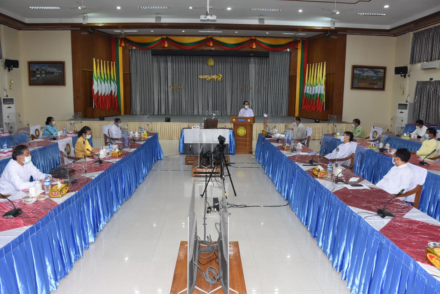 ကျန်းမာရေးနှင့်အားကစားဝန်ကြီးဌာန ပြည်ထောင်စုဝန်ကြီး ဒေါက်တာသက်ခိုင်ဝင်းသည် ယနေ့နံနက် ၁၀ နာရီတွင် ကျန်းမာရေးနှင့်အားကစားဝန်ကြီးဌာန COVID-19 Central Command Center ခန်းမ၌ ညွှန်ကြားရေးမှူးချုပ်များနှင့် တိုင်းရင်းဆေးပညာဦးစီးဌာနမှ တာဝန်ရှိပုဂ္ဂိုလ်များ၊ မြန်မာနိုင်ငံတိုင်းရင်းဆေးကောင်စီနာယကအဖွဲ့ဝင်များ၊ တိုင်းရင်းဆေး ကောင်စီဝင်များ၊ တိုင်းရင်းဆေး ပညာရပ်ဆိုင်ရာအကြံပေးအဖွဲ့ဝင်များ၊ မြန်မာနိုင်ငံတိုင်းရင်း ဆေးဆရာအသင်းမှအဖွဲ့ဝင်များ၊ မြန်မာနိုင်ငံ တိုင်းရင်းဆေးဝါး ထုတ်လုပ်သူများနှင့် ဆေးပစ္စည်း လုပ်ငန်းရှင်များအသင်းမှ အဖွဲ့ဝင်များနှင့် တွေ့ဆုံဆွေးနွေးသည်။