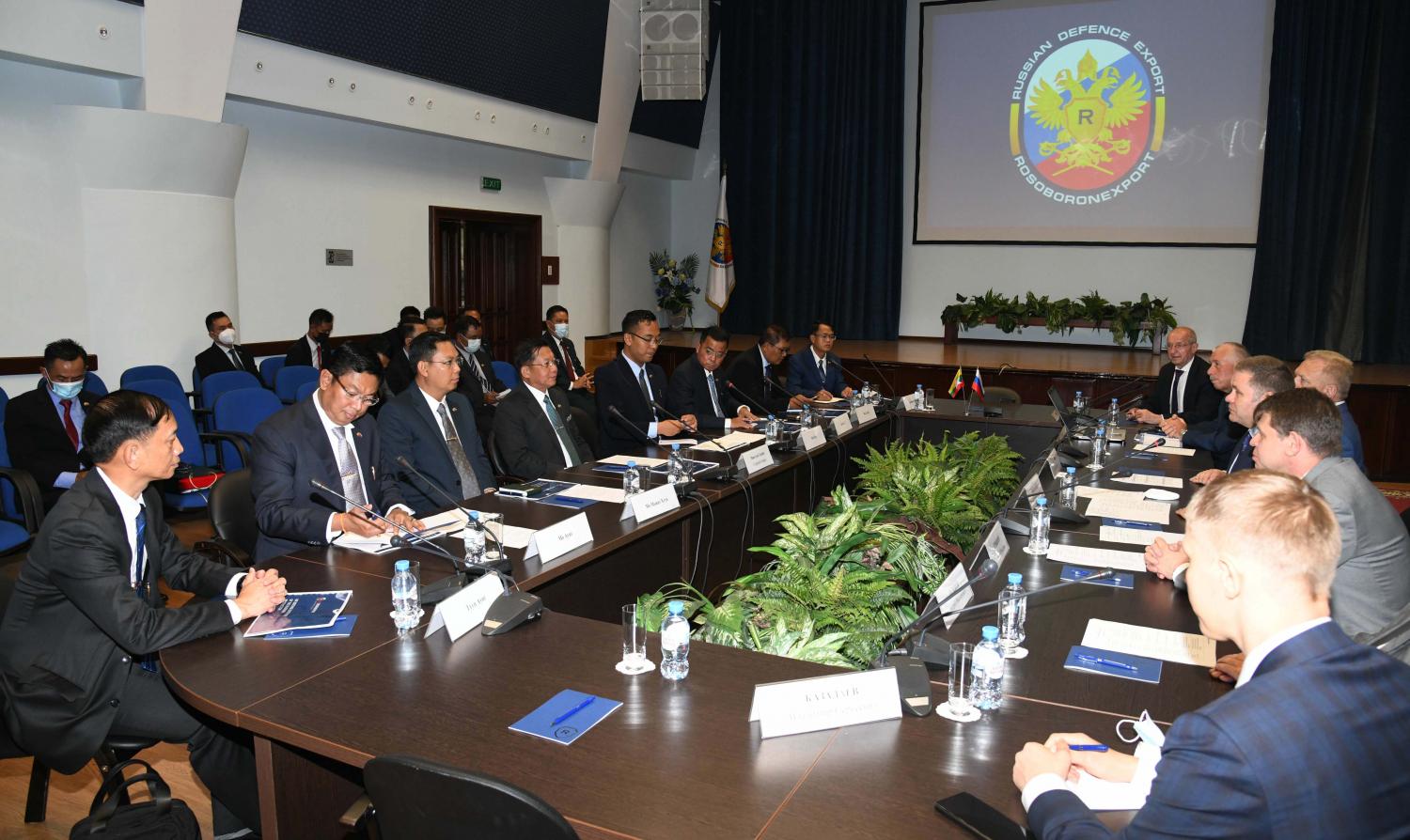 ဦးစွာ နိုင်ငံတော်စီမံအုပ်ချုပ်ရေးကောင်စီ ဥက္ကဋ္ဌ၊ တပ်မတော်ကာကွယ်ရေးဦးစီးချုပ်နှင့် အဖွဲ့ဝင်များအား Rosoboronexport ကုမ္ပဏီမှ ဒုတိယညွှန်ကြားရေးမှူးချုပ် Mr. Alexander Shcherbininနှင့် အဖွဲ့ဝင်များက ကြိုဆိုနှုတ်ဆက်ကြသည်။ ထို့နောက် အစည်းအဝေးခန်းမတွင် လက်ထောက်ညွှန်ကြားရေးမှူးချုပ် ဖြစ်သူ Mr. Andrew CHEKMAREW နှင့် တာဝန်ရှိသူများက စစ်ဘက်နည်းပညာဆိုင်ရာ ပူးပေါင်းဆောင်ရွက်နိုင်မည့် ကိစ္စရပ်များကို  Power Point Presentation များဖြင့် ရှင်းလင်းတင်ပြရာ ရှင်းလင်းတင်ပြမှုများအပေါ် နိုင်ငံတော်စီမံအုပ်ချုပ်ရေးကောင်စီ ဥက္ကဋ္ဌ၊ တပ်မတော်ကာကွယ်ရေးဦးစီးချုပ်နှင့် အဖွဲ့ဝင်များက သိရှိလိုသည်များအား ပြန်လည် မေးမြန်းဆွေးနွေးခဲ့ကြသည်။