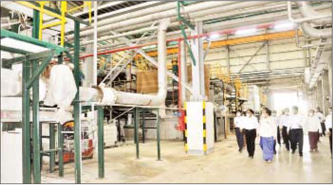 ကြည့်ရှုစစ်ဆေး ထို့နောက် ပြည်ထောင်စုဝန်ကြီးသည်တစ်ရက်လျှင် တန် ၂၄၀၀ ထုတ်လုပ် နိုင်သည့်စက္ကူပျော့ဖတ်စက်ရုံ ပြန်လည် လည်ပတ်နိုင်ရေး အတွက် ပြင်ဆင်ဆောင်ရွက် ထားရှိမှုအခြေအနေ ကို လည်းကောင်း၊ ဂျာမနီအပါအဝင် ဥရောပနိုင်ငံများသို့ တင်ပို့ရောင်း ချလျက်ရှိသည့် ဂွမ်းကပ်အနွေးထည်နှင့် ဂျာကင်အမျိုးမျိုးကို ဝန်ထမ်းအင်အား ၄၀၀၀ ကျော်ဖြင့် ထုတ်လုပ်လည်ပတ် ဆောင်ရွက်လျက်ရှိသည့် အထည်ချုပ်စက်ရုံများကို လည်းကောင်း ကြည့်ရှု စစ်ဆေးခဲ့ကြောင်း သိရ သည်။