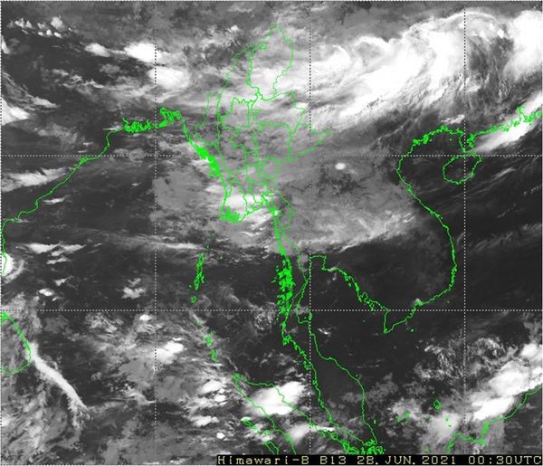 ယနေ့ညနေအထိခန့်မှန်းချက်။ နေပြည်တော်၊ စစ်ကိုင်းတိုင်းဒေသကြီးအောက်ပိုင်းနှင့် မကွေးတိုင်းဒေသကြီးတို့တွင် နေရာကွက်ကျား၊ မန္တလေးတိုင်းဒေသကြီး၊ တနင်္သာရီတိုင်းဒေသကြီး၊ ရှမ်းပြည်နယ်(တောင်ပိုင်းနှင့် အရှေ့ပိုင်း)၊ ရခိုင်ပြည်နယ်နှင့် ကယားပြည်နယ်တို့တွင် နေရာကျဲကျဲ၊ စစ်ကိုင်းတိုင်းဒေသကြီးအထက်ပိုင်း၊ ပဲခူးတိုင်းဒေသကြီး၊ ဧရာဝတီတိုင်းဒေသကြီး၊ ကချင်ပြည်နယ်၊ ရှမ်းပြည်နယ်(မြောက်ပိုင်း)၊ ချင်းပြည်နယ်နှင့် ကရင်ပြည်နယ်တို့တွင် နေရာစိပ်စိပ်နှင့် ကျန်တိုင်းဒေသကြီးနှင့် ပြည်နယ်တို့တွင် နေရာအနှံ့အပြား မိုးထစ်ချုန်းရွာပြီး၊ ကချင်ပြည်နယ်နှင့် မွန်ပြည်နယ်တို့တွင် နေရာကွက်၍ မိုးကြီးနိုင်ပါသည်။ ရွာရန်ရာနှုန်းပြည့် ဖြစ်ပါသည်။