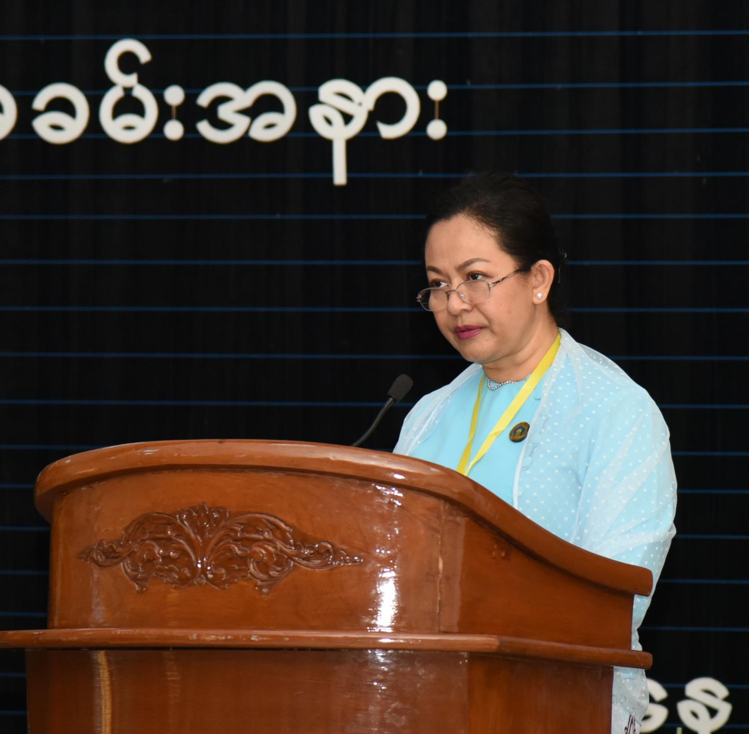 ထို့နောက် မြန်မာနိုင်ငံလုံးဆိုင်ရာ အမျိုးသမီးကော်မတီဥက္ကဋ္ဌ၊ လူမှုဝန်ထမ်း၊ ကယ်ဆယ်ရေးနှင့် ပြန်လည်နေရာချထားရေးဝန်ကြီးဌာန ပြည်ထောင်စုဝန်ကြီး ဒေါက်တာ သက်သက်ခိုင် က အမျိုးသမီးများဖွံ့ဖြိုးတိုးတက်ရေးဆိုင်ရာ လုပ်ငန်းများအကောင်အထည်ဖော် ဆောင်ရွက်နေမှု၊ နိုင်ငံတကာနှင့် ဒေသဆိုင်ရာအဆင့် ကတိကဝတ်ပြုမှုများ၊ အပြည်ပြည်ဆိုင်ရာ အမျိုးသမီးများနေ့ ကျင်းပဆောင်ရွက်နေမှု၊ လုပ်ငန်းယန္တရားဖွဲ့စည်းဆောင်ရွက်မှု၊ အမျိုးသားအဆင့် မဟာဗျူဟာ စီမံကိန်း (၂၀၁၃-၂၀၂၂) ဆောင်ရွက်မှု၊ ပဋိပက္ခအတွင်း လိင်ပိုင်းဆိုင်ရာ အကြမ်းဖက်မှု တားဆီး ကာကွယ်ရေးနှင့် တုံ့ပြန်ဆောင်ရွက်ရေးဆိုင်ရာ ဆောင်ရွက်မှုများ၊ အမျိုးသမီးများအပေါ် အကြမ်းဖက်မှု တားဆီးကာကွယ်ရေးဥပဒေ ပြဋ္ဌာန်းနိုင်ရေး ဆောင်ရွက်နေမှု၊ အိမ်တွင်း အကြမ်းဖက်မှု၊ အမျိုးသမီးများအပေါ် အကြမ်းဖက်မှု၊ သက်ငယ် မုဒိမ်းမှုများနှင့် ပတ်သက်၍ Helpline Service ဖွင့်လှစ်ဆောင်ရွက်ထားမှု၊ ကျားမရေးရာ အခြေပြုအကြမ်းဖက် ဖြစ်ရပ်များအား တုံ့ပြန်ဆောင်ရွက်နေမှု၊ အကြမ်းဖက်ခံရသူများအား ငွေကြေးထောက်ပံ့ပေးမှု အခြေအနေ၊ အကြမ်းဖက်ခံရသည့် အမျိုးသမီးများအား တစ်နေရာတည်းတွင် ဝန်ဆောင်မှုပေးနိုင်သော စင်တာများ ဖွင့်လှစ်ဆောင်ရွက်နေမှုနှင့် အသိပညာပေး လုပ်ငန်းများဆောင်ရွက်နေမှု၊ နေပြည်တော်ကောင်စီ၊ တိုင်းဒေသကြီးနှင့် ပြည်နယ်များတွင် အိမ်တွင်းမှု သင်တန်းများ ဖွင့်လှစ် သင်ကြားနေမှု အခြေအနေ၊ အမျိုးသမီးများအား နည်းမျိုးစုံဖြင့် ခွဲခြားမှု ပပျောက်ရေးဆိုင်ရာ ကုလသမဂ္ဂ ကွန်ဗင်းရှင်း အကောင်အထည်ဖော်မှု အခြေအနေ၊ စဉ်ဆက်မပြတ် ဖွံ့ဖြိုးမှု ပန်းတိုင်များ၏ ပန်းတိုင် -၅ (SDG-Goal 5) အကောင်အထည်ဖော်မှု၊ အာဆီယံ အမျိုးသမီး ကော်မတီ ဆောင်ရွက်မှုများနှင့် ပတ်သက်၍ ရှင်းလင်းတင်ပြသည်။