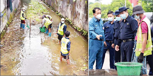 ထို့နောက် မရမ်းကုန်းမြို့နယ် (၈)ရပ်ကွက် ကမ္ဘာအေးဘုရားလမ်းပေါ်ရှိ ဇွဲစုံချောင်းသို့ ရောက်ရှိပြီး ချောင်းအတွင်း အမှိုက်များ ဆယ်ယူရှင်းလင်း နေမှုကိုလည်းကောင်း၊ မရမ်းကုန်းမြို့နယ် (၁၀) ရပ်ကွက် အင်းလျားရိပ်သာလမ်းရှိ အင်းလျားကန် ရေပိုလွှဲ Spill Wayနှင့် ရေထုတ်မြောင်း ရေထိန်း တံခါးများ ကြံ့ခိုင်မှုအခြေအနေနှင့် ရေထုတ်မြောင်း ရေစီးရေလာကောင်းမွန်စေရေး ဆောင်ရွက်ထားမှုကိုလည်းကောင်း ကြည့်ရှုစစ်ဆေးကာ လိုအပ်သည်များ မှာကြားသည်။