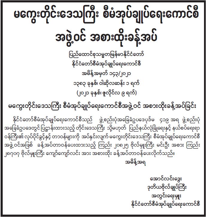 မကွေးတိုင်းဒေသကြီး စီမံအုပ်ချုပ်ရေးကောင်စီ အဖွဲ့ဝင် အစားထိုးခန့်အပ်