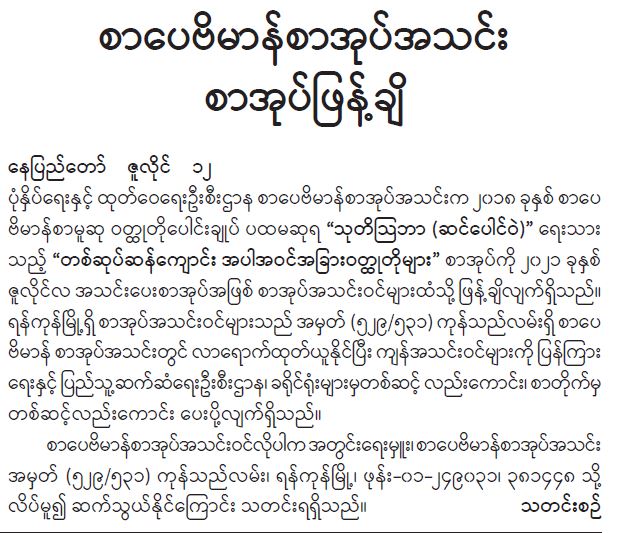 စာပေဗိမာန်စာအုပ်အသင်း စာအုပ်ဖြန့်ချိ