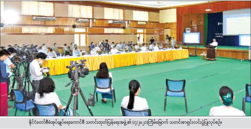 နိုင်ငံတော်စီမံအုပ်ချုပ်ရေးကောင်စီ သတင်း ထုတ်ပြန်ရေးအဖွဲ့ ၏ ၇/၂၀၂၁ ကြိမ်မြောက် သတင်းစာရှင်းလင်းပွဲအခမ်းအနားကို ဇူလိုင် ၁၂ ရက် နံနက်ပိုင်းတွင် ပြန်ကြားရေးဝန်ကြီးဌာန၌ ကျင်းပ ပြုလုပ်ပြီး နိုင်ငံတော်စီမံအုပ်ချုပ်ရေးကောင်စီ သတင်းထုတ်ပြန်ရေးအဖွဲ့ ခေါင်းဆောင် ဗိုလ်ချုပ် ဇော်မင်းထွန်း၊ ပြည်ထောင်စုရွေးကောက်ပွဲ ကော်မရှင်အဖွဲ့ဝင် ဦးခင်မောင်ဦးနှင့် ဌာနဆိုင်ရာ ကိုယ်စားလှယ်များက သတင်းမီဒီယာများ ၏သိရှိလို သည့် မေးမြန်းမှုများကို ပြန်လည်ဖြေကြားသည်။