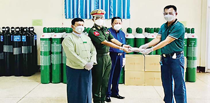 လက်ရှိအချိန်တွင် COVID-19 ရောဂါ တတိယလှိုင်းဖြစ်ပွားမှု မြင့်တက်လျက်ရှိပြီး ဓာတ်ခွဲ အတည်ပြုပိုးတွေ့လူနာများကို ကုသရေးလုပ်ငန်းများနှင့် ကန့်သတ် စောင့်ကြည့်ရမည့် လူနာများကို ကျန်းမာရေးစောင့်ရှောက်မှု လုပ်ငန်းများဆောင်ရွက် ပေးရာတွင် လိုအပ်သည့် ကာကွယ်၊ ထိန်းချုပ်၊ ကုသရေးပစ္စည်းများ၊ အောက်ဆီဂျင်အိုးများနှင့် အာဟာရဖြည့် စားသောက်ဖွယ်ရာများကို စေတနာ ရှင်အလှူရှင်များက တပ်မတော်ဆေးရုံများ၊ ပြည်သူ့ဆေးရုံများ၊ ကျန်းမာရေးဌာနများနှင့် COVID Center များသို့ လာရောက်လှူဒါန်းလျက်ရှိသည်။