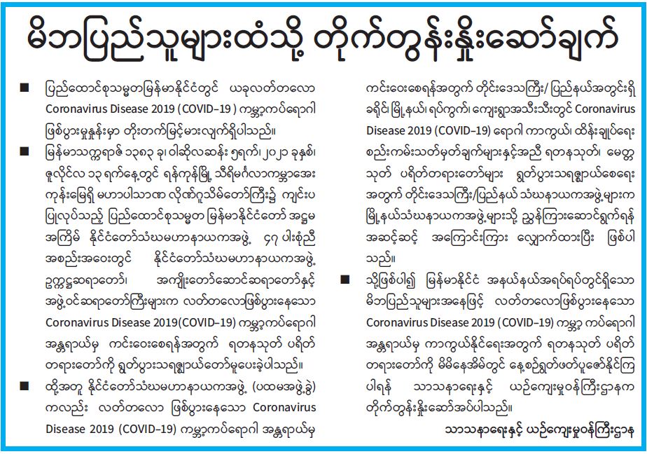 မိဘပြည်သူများထံသို့ တိုက်တွန်းနှိုးဆော်ချက်