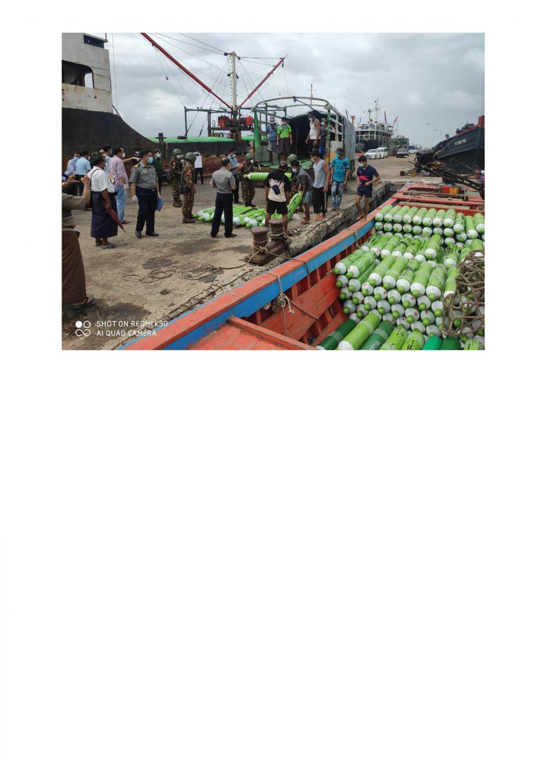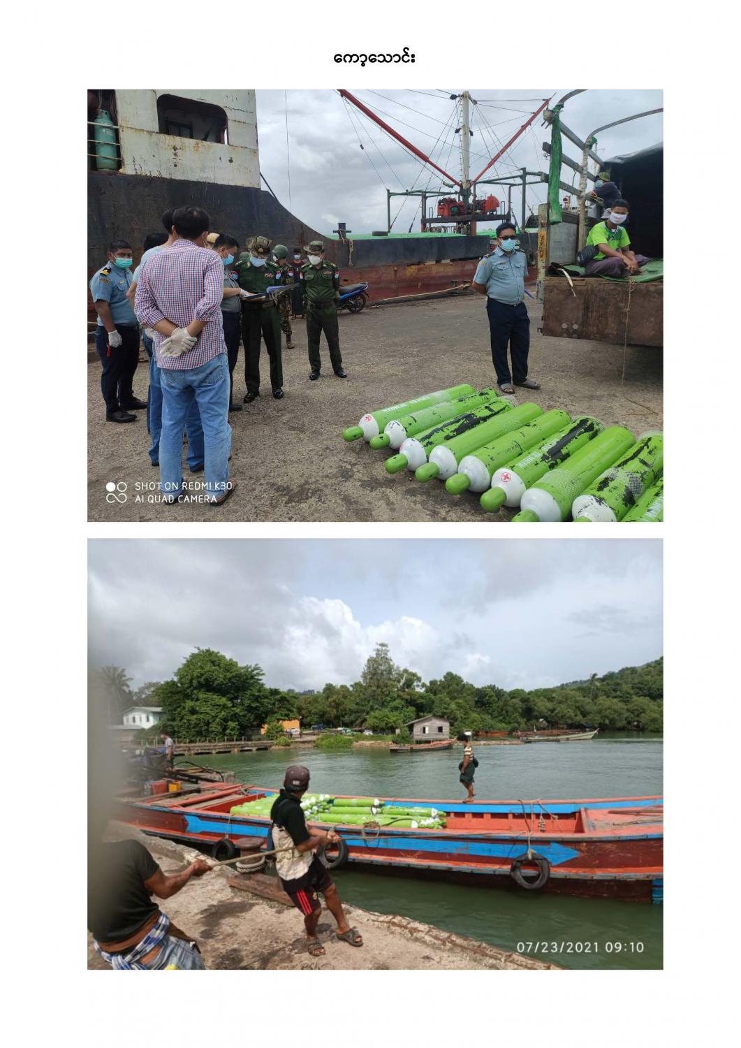 ကိုဗစ်-၁၉ ကူးစက်ရောဂါ ကာကွယ်ကုသရေးပစ္စည်းများတင်သွင်းရာတွင် နိုင်ငံတော်မှ ရောဂါထိန်းချုပ်မှုအတွက် ဦးစားပေးဆောင်ရွက်လျက်ရှိ သည့် ဇူလိုင် ၁၂ ရက်မှ ၂၃ ရက်အထိ မော်တော်ယာဉ် အစီး (၃၅၀) ဖြင့် အောက်ဆီဂျင်အရည် (Bowser) ယာဉ်ဖြင့် (၄၅၅) တန်၊ အောက်ဆီဂျင်အရည် (အိုးဖြင့်) (၂၆၈) တန်၊ အောက်ဆီဂျင်ဓါတ်ငွေ့ (အိုးဖြင့်) (၆၂) တန်၊ အိမ်သုံး အောက်ဆီဂျင်စက် (၂၅၂၇၇)ခု၊ Test Kit (၁၄၆၈၅၀) ခု၊ နှာခေါင်းစီး ( Mask ) (၆၁၇) တန် တင်သွင်းခွင့်ပြုခဲ့ပြီးဖြစ်သည်။