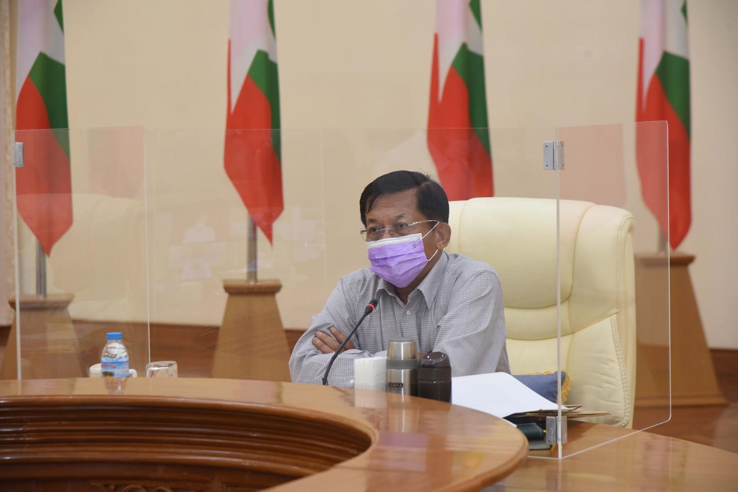 ကိုဗစ် - ၁၉ ရောဂါ ကာကွယ်၊ ထိန်းချုပ်၊ ကုသရေးဆိုင်ရာ ပဉ္စမအကြိမ် ညှိနှိုင်း အစည်းအဝေးကို ယနေ့နံနက်ပိုင်းတွင် နေပြည်တော်ရှိ ဘုရင့်နောင်ရိပ်သာ အစည်းအဝေး ခန်းမ၌ ကျင်းပပြုလုပ်ရာ နိုင်ငံတော်စီမံအုပ်ချုပ်ရေးကောင်စီ ဥက္ကဋ္ဌ ဗိုလ်ချုပ်မှူးကြီး မင်းအောင်လှိုင် တက်ရောက် အမှာစကား ပြောကြားသည်။