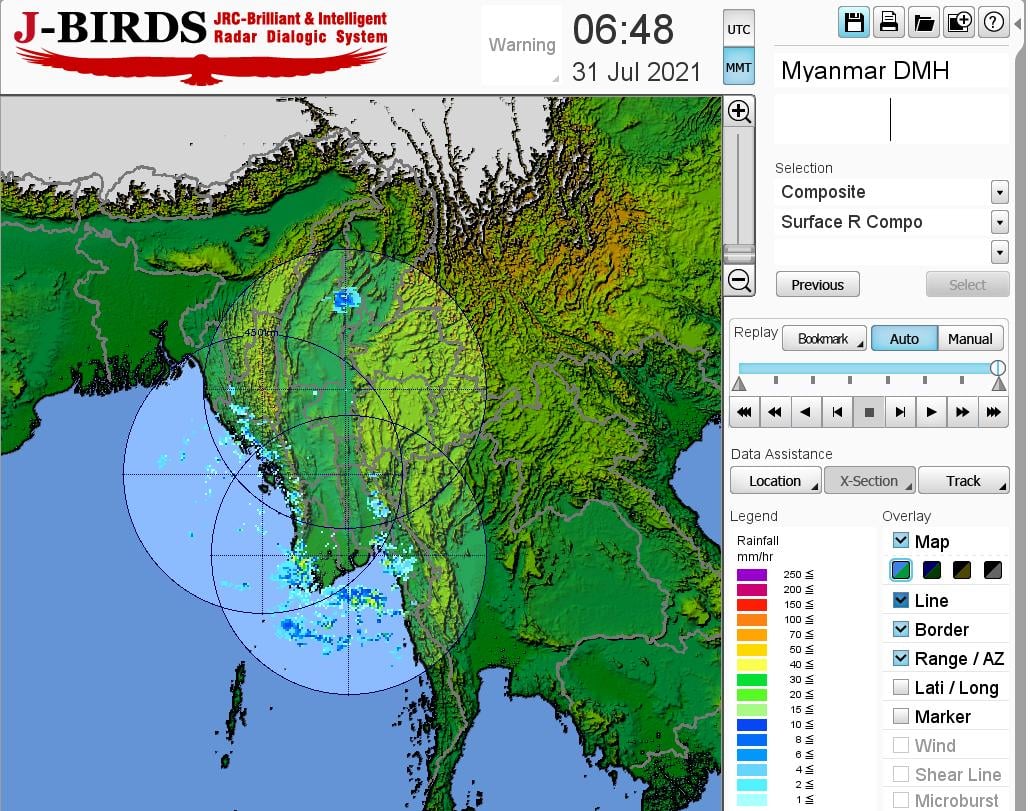 ဘင်္ဂလားပင်လယ်အော်အခြေအနေ။ ကပ္ပလီပင်လယ်ပြင်နှင့် ဘင်္ဂလားပင်လယ်အော်တို့တွင် မုတ်သုံလေ အားအသင့်အတင့်မှ အားကောင်းနေပါသည်။