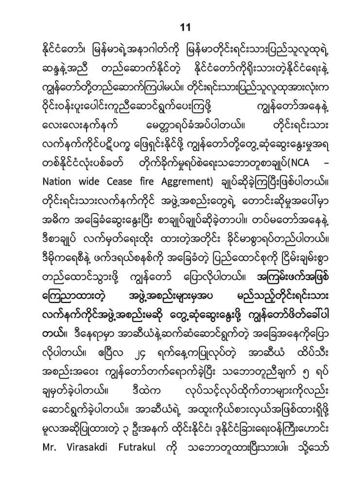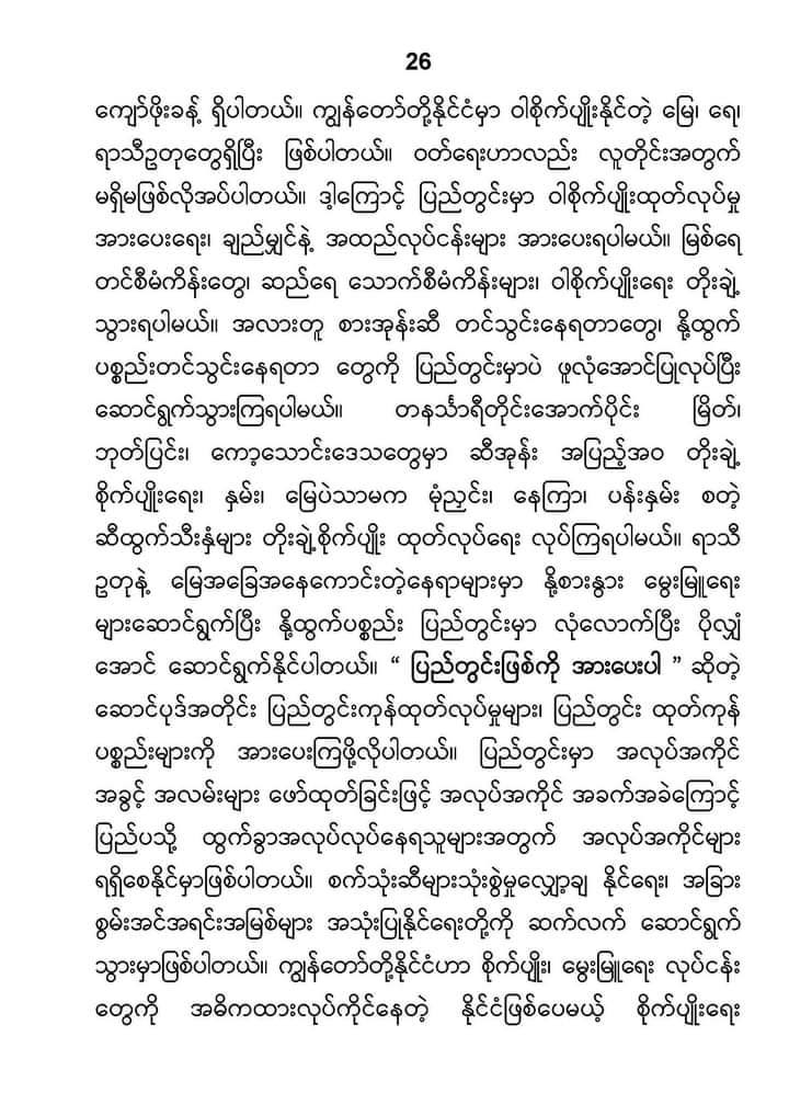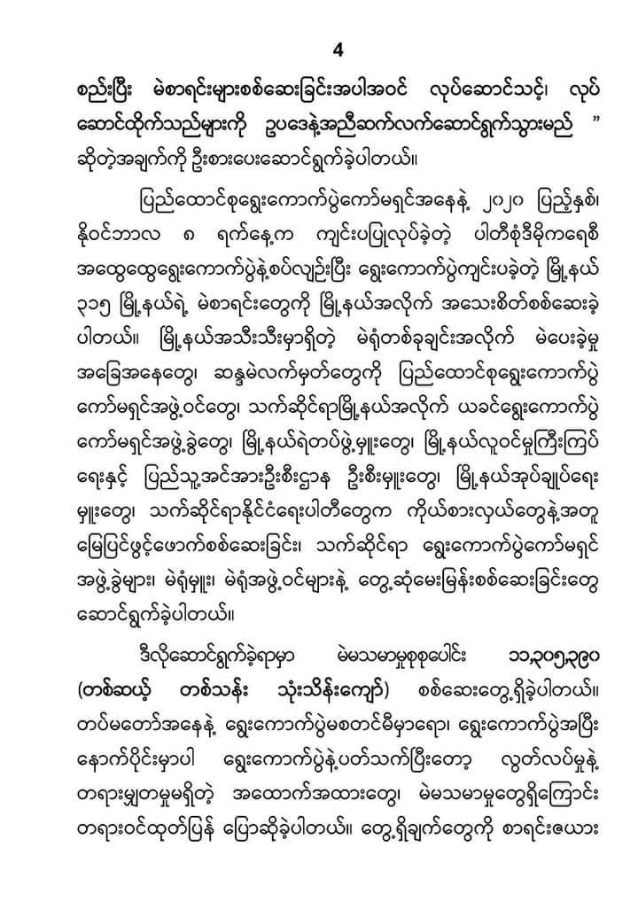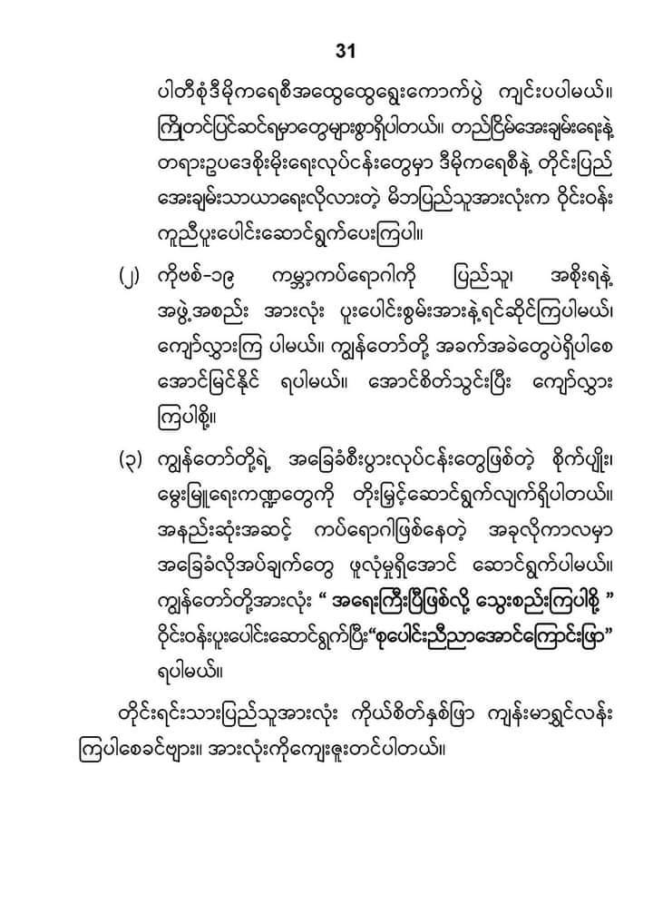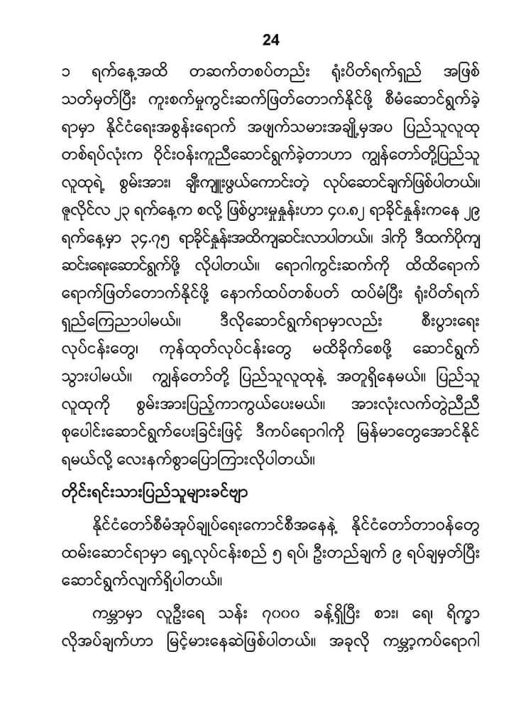 နိုင်ငံတော်စီမံအုပ်ချုပ်ရေးကောင်စီ၏ (၆) လပြည့် နိုင်ငံတော်တာဝန် ထမ်းဆောင်ခဲ့သည့် ၂၀၂၁ ခုနှစ်၊ သြဂုတ်လ ၁ ရက်နေ့တွင် နိုင်ငံတော် စီမံအုပ်ချုပ်ရေးကောင်စီဥက္ကဋ္ဌ ဗိုလ်ချုပ်မှူးကြီး မင်းအောင်လှိုင် ပြောကြားသည့်မိန့်ခွန်း