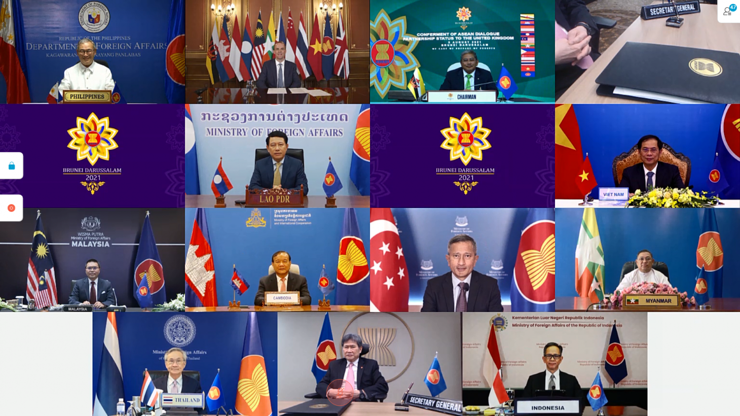 ထို့နောက် ပြည်ထောင်စုဝန်ကြီးသည် မွန်းလွဲ ၃ နာရီတွင် ဗီဒီယိုကွန်ဖရင့် ဖြင့် ကျင်းပသည့် ဗြိတိန်နိုင်ငံကို အာဆီယံ၏ ဆွေးနွေးဖက်နိုင်ငံအဖြစ် လက်ခံကြောင်း ကြိုဆိုသည့် အခမ်းအနား သို့ တက်ရောက်ခဲ့သည်။