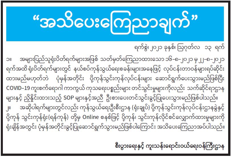 ဝန်ကြီးဌာန ကြေညာချက်များ