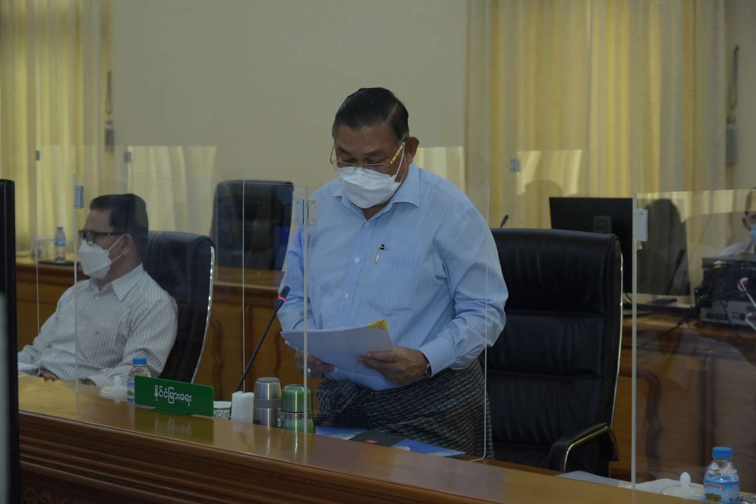 Relief Flight များ ပြေးဆွဲ၍ ခရီးသည်နှင့် ဆေးဝါးများ သယ်ယူပို့ဆောင်ပေး နိုင်ခဲ့သည့် အခြေ အနေနှင့် ပို့ဆောင်ဆက်သွယ်မှု မပြတ်တောက်စေရေး လေယာဉ်၊ ရေယာဉ်များနှင့် ကုန်းလမ်း ပို့ဆောင်ရေးတို့မှ ခရီးစဉ်များ ပြေးဆွဲဆောင်ရွက်လျက်ရှိသည့် အခြေအနေ၊ ရောဂါပိုး အတည်ပြုလူနာများအား တပ်မတော်စင်တာများတွင် ကုသဆောင်ရွက်ပေးနေမှုနှင့် လူနာများ အား ကုသပေးနိုင်ရေးဆေးတပ်ဖွဲ့ဝင်များကို တာဝန်ပေးအပ်ထားရှိသည့် အခြေအနေ၊ ဆေးဝါး များ တင်သွင်းဖြန့်ဖြူးမှု လွယ်ကူလျင်မြန်စေရေးအတွက် ဖြေလျော့၊ ချိတ်ဆက်ဆောင်ရွက် ပေးနေမှုနှင့် ပြည်တွင်းရှိ နိုင်ငံပိုင်၊ ပုဂ္ဂလိကပိုင် ဆေးဝါးစက်ရုံများမှ ဆေးဝါးများ ထုတ်လုပ် ပေးနေမှု အခြေအနေများနှင့် ပတ်သက်၍ အကျယ်တဝင့် ရှင်းလင်းတင်ပြကြရာ နိုင်ငံတော် စီမံအုပ်ချုပ်ရေးကောင်စီဥက္ကဋ္ဌ၊ နိုင်ငံတော်ဝန်ကြီးချုပ်က လိုအပ်သည်များ ဖြည့်စွက်မှာကြား သည်။