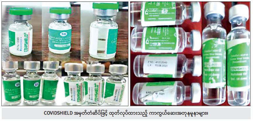 (ခ) ကာကွယ်ဆေးပုလင်း(၁)လုံးလျှင် (၄) ကြိမ်စာ ပါဝင်သော 2ml ပုလင်းများကို covISHIELD အမှတ်တံဆိပ်ဖြင့် အတုအပပြုလုပ်ရောင်းချလျက်ရှိကြောင်း ဖော်ပြထားပါသည်။